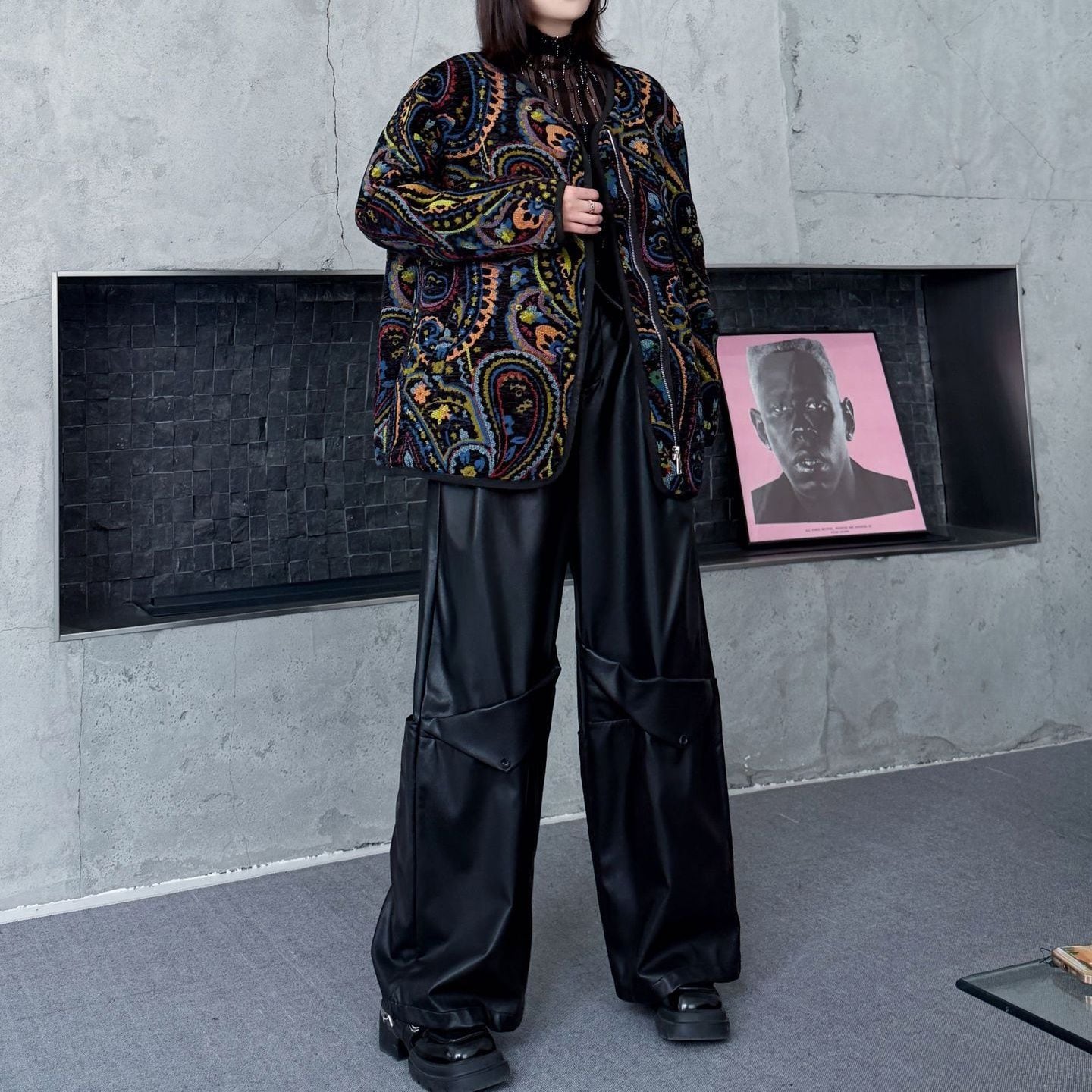 BLACK PAISLEY V-NECK FULLZIP DESIGN JACKET 1color M-15171