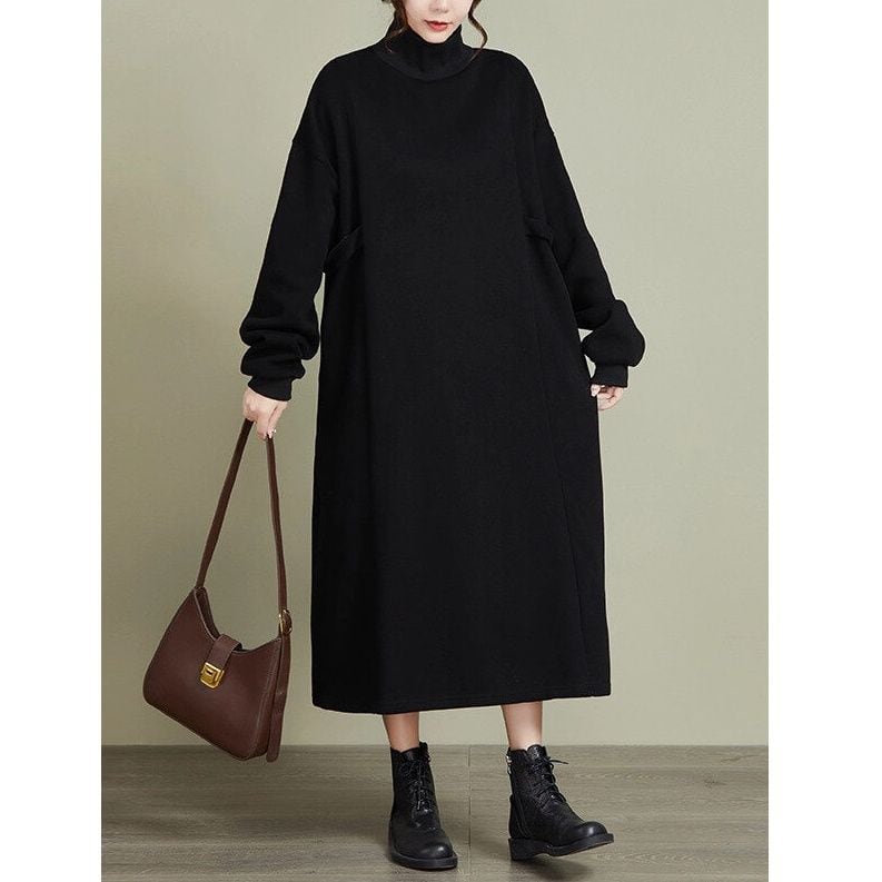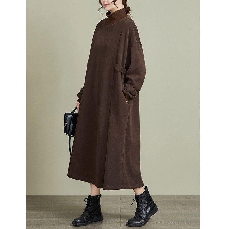 単色のスウェット素材でできた、ハイネック・長袖・膝下丈のプルオーバーワンピースです。サイドのストラップが作るシルエットが美しい、リラックスした印象カジュアルアイテムです。ブラックとブラウンの2色から選べます。 SIZE:※測り方によって2-3cmの差が生じる場合がございます。 【L】バスト120cm 袖丈51cm 着丈110cm 【2XL】バスト126cm 袖丈52cm 着丈111cm COLOR:Black、Brown 素材:ポリエステル、その他 モデル着用サイズ:L モデル情報:身長161cm 体重49kg STYLE CALENDAR:春〇 夏△ 秋◎ 冬◎ お届けについて こちらの商品は海外店舗より直接発送となる為、 ご決済から到着までは、多くの場合【10日-2週間前後】でお届けしております。 ※在庫状況や輸送の混雑により、4週間前後かかる場合がございます。 注意事項 ・商品在庫切れにより注文キャンセルとさせていただく恐れもございますので、予めご了承くださいませ。 ・仕入れ工場を変えることがあるため、記載サイズと若干異なる場合がございます。 ・商品の色味は、お手持ちのスマートフォンの画面によって実物と若干異なる場合がございます。 ・イメージ違いやサイズ交換等、お客さまご都合による交換・返品はご遠慮ください。 送料について 全国一律580円。ただし10,000円以上のご注文で送料無料となります。 お支払い方法について ・クレジットカード決済(VISA/Mastercard/JCB/アメリカン・エクスプレス/ Diners Club) ・コンビニ決済/Pay-easy ※前払いのお支払い方法 ・Pay ID あと払い(コンビニ払い、口座振替) ※あと払いのお支払い方法 ・キャリア決済(d払い/au PAY(auかんたん決済)/ソフトバンク・ワイモバイルまとめて支払い) 管理番号:M-15175