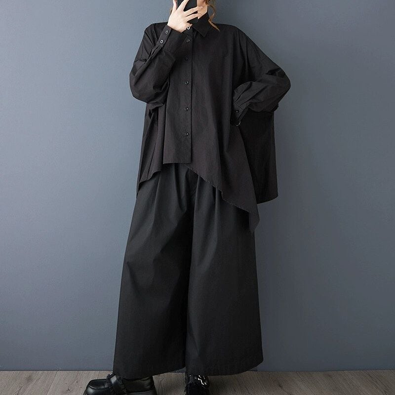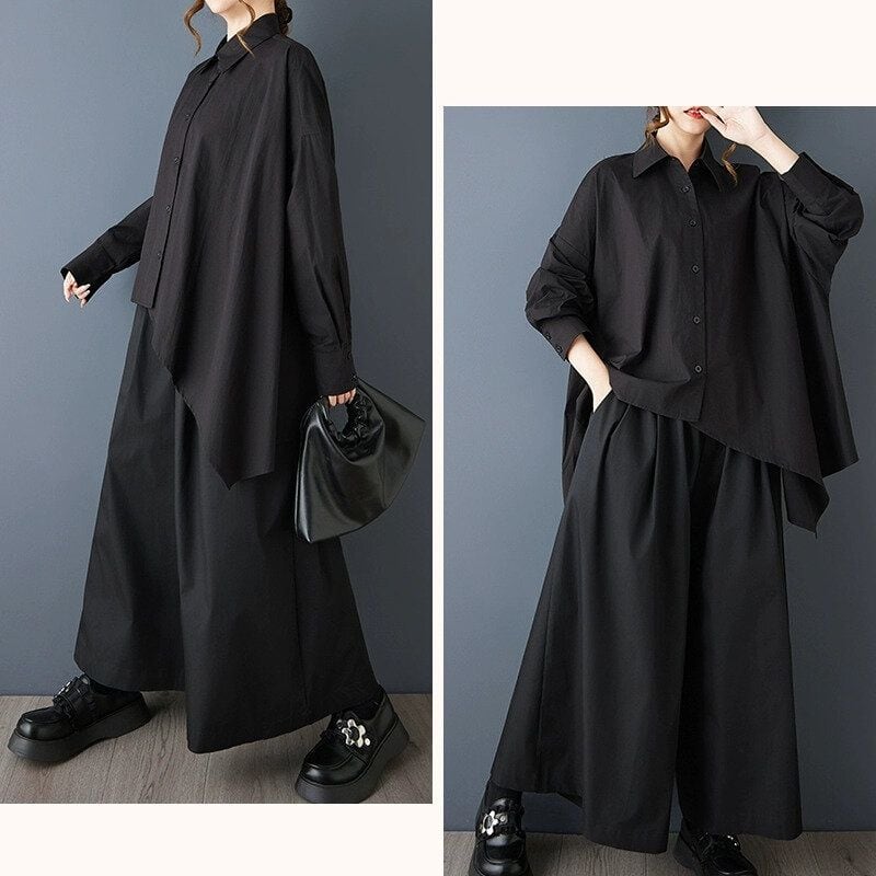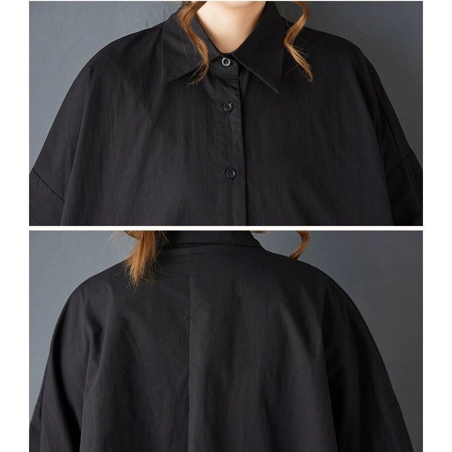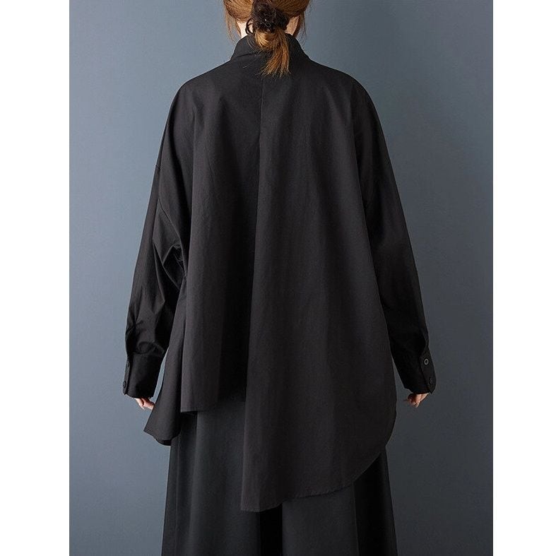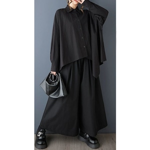 BLACK A-LINE ASYMMETRIC DESIGN LONG SLEEVES SHIRT 1color M-15180