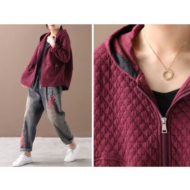 単色のキルティング素材でできた、フード付き・長袖・ショート丈のフルジップ・カジュアルジャケットです。ポケットやバックのチャイナ風留め具飾りがキュートなアクセントになっています。丸みのあるシルエットがお洒落な、何にでも合わせやすいアイテムです。色は3色から選べます。 SIZE:※測り方によって2-3cmの差が生じる場合がございます。 【M】バスト136cm 肩幅43cm 袖丈60cm 袖口25cm ウエスト138cm 着丈62-69cm 【L】バスト140cm 肩幅44cm 袖丈61cm 袖口26cm ウエスト142cm 着丈63-70cm 【XL】バスト144cm 肩幅45cm 袖丈61cm 袖口27cm ウエスト146cm 着丈64-71cm COLOR:Black、Red、Green 素材:ポリエステル、その他 モデル着用サイズ:L モデル情報:身長161cm 体重49kg お届けについて こちらの商品は海外店舗より直接発送となる為、 ご決済から到着までは、多くの場合【10日-2週間前後】でお届けしております。 ※在庫状況や輸送の混雑により、4週間前後かかる場合がございます。 注意事項 ・商品在庫切れにより注文キャンセルとさせていただく恐れもございますので、予めご了承くださいませ。 ・仕入れ工場を変えることがあるため、記載サイズと若干異なる場合がございます。 ・商品の色味は、お手持ちのスマートフォンの画面によって実物と若干異なる場合がございます。 ・イメージ違いやサイズ交換等、お客さまご都合による交換・返品はご遠慮ください。 送料について 全国一律580円。ただし10,000円以上のご注文で送料無料となります。 お支払い方法について ・クレジットカード決済(VISA/Mastercard/JCB/アメリカン・エクスプレス/ Diners Club) ・コンビニ決済/Pay-easy ※前払いのお支払い方法 ・Pay ID あと払い(コンビニ払い、口座振替) ※あと払いのお支払い方法 ・キャリア決済(d払い/au PAY(auかんたん決済)/ソフトバンク・ワイモバイルまとめて支払い) 管理番号:M-15206