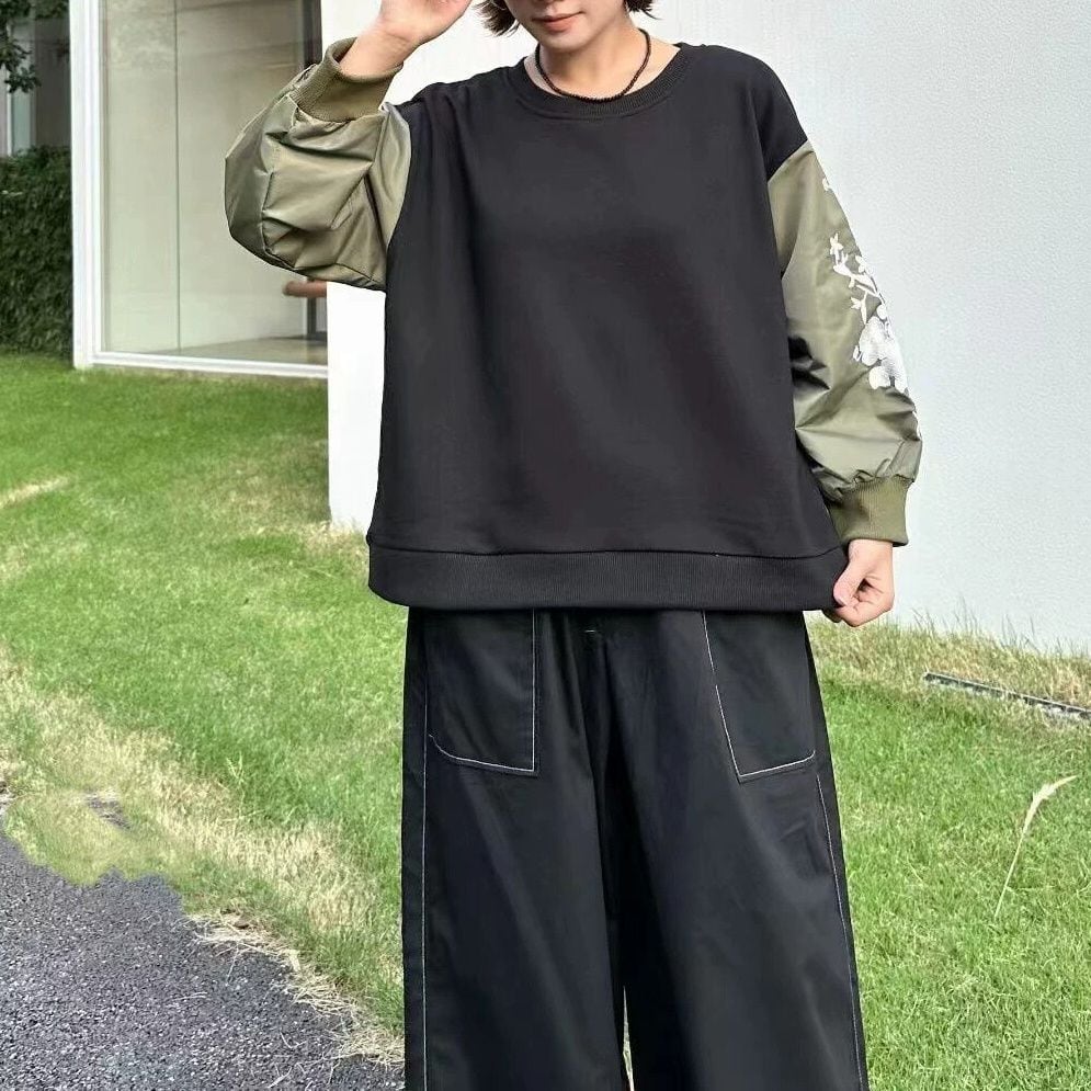 EMBROIDERED CONTRAST SLEEVE DESIGN SWEAT SHIRT 2colors M-15208