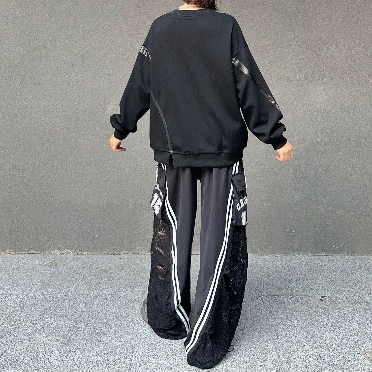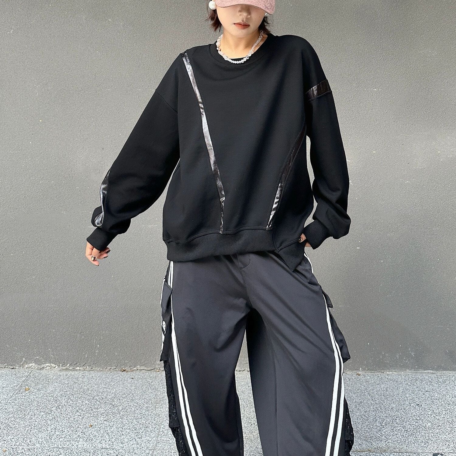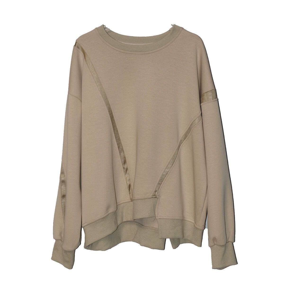 LINE STITCH IRREGULAR HEM ROUND NECK SWEAT SHIRT 3colors M-15221