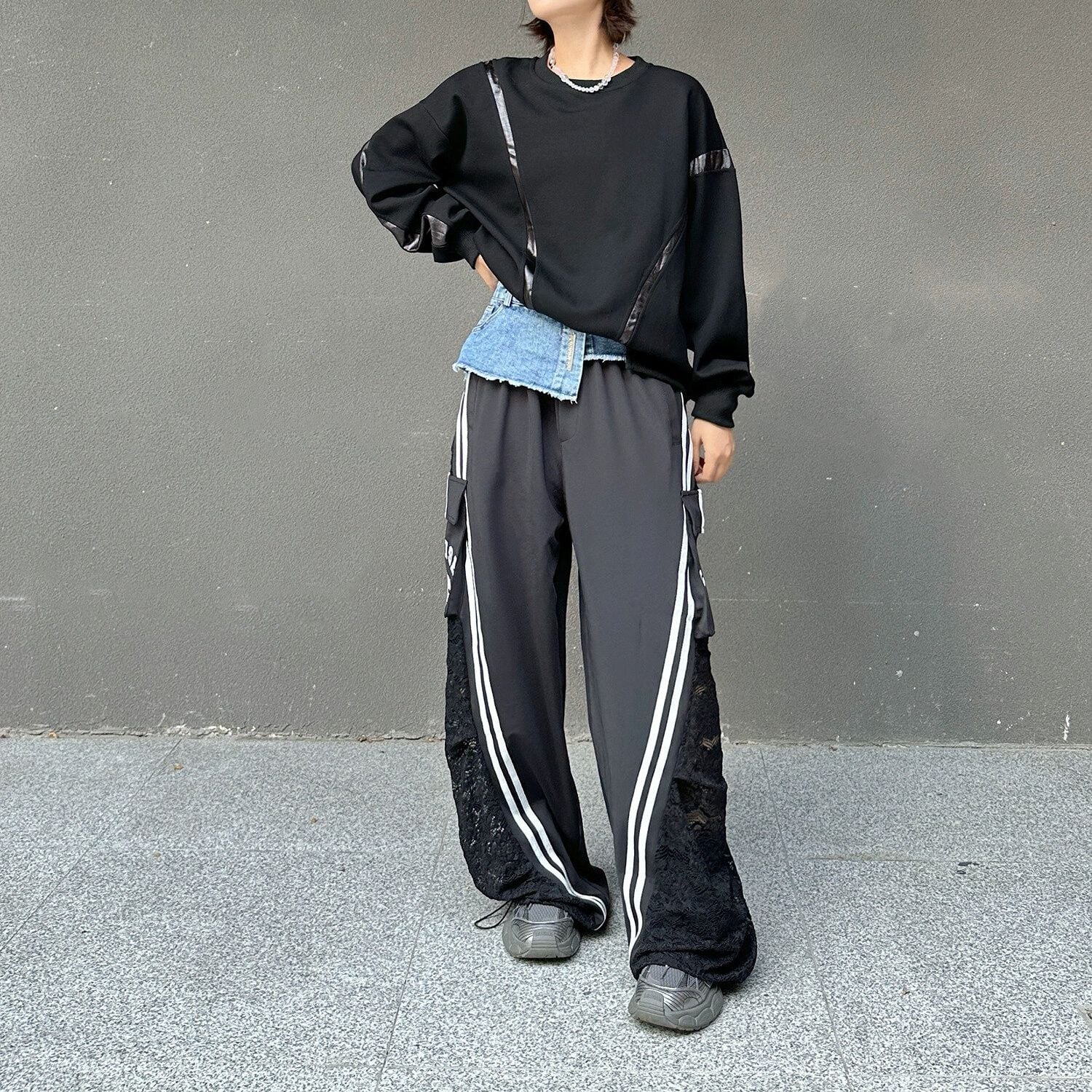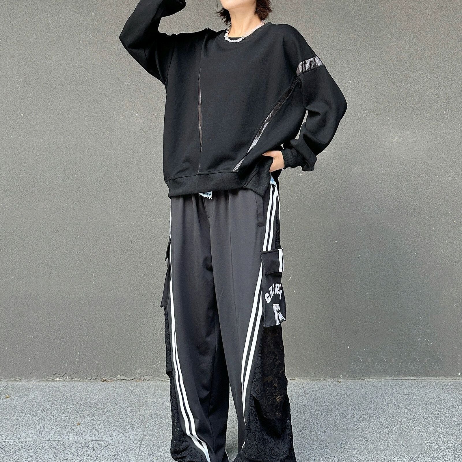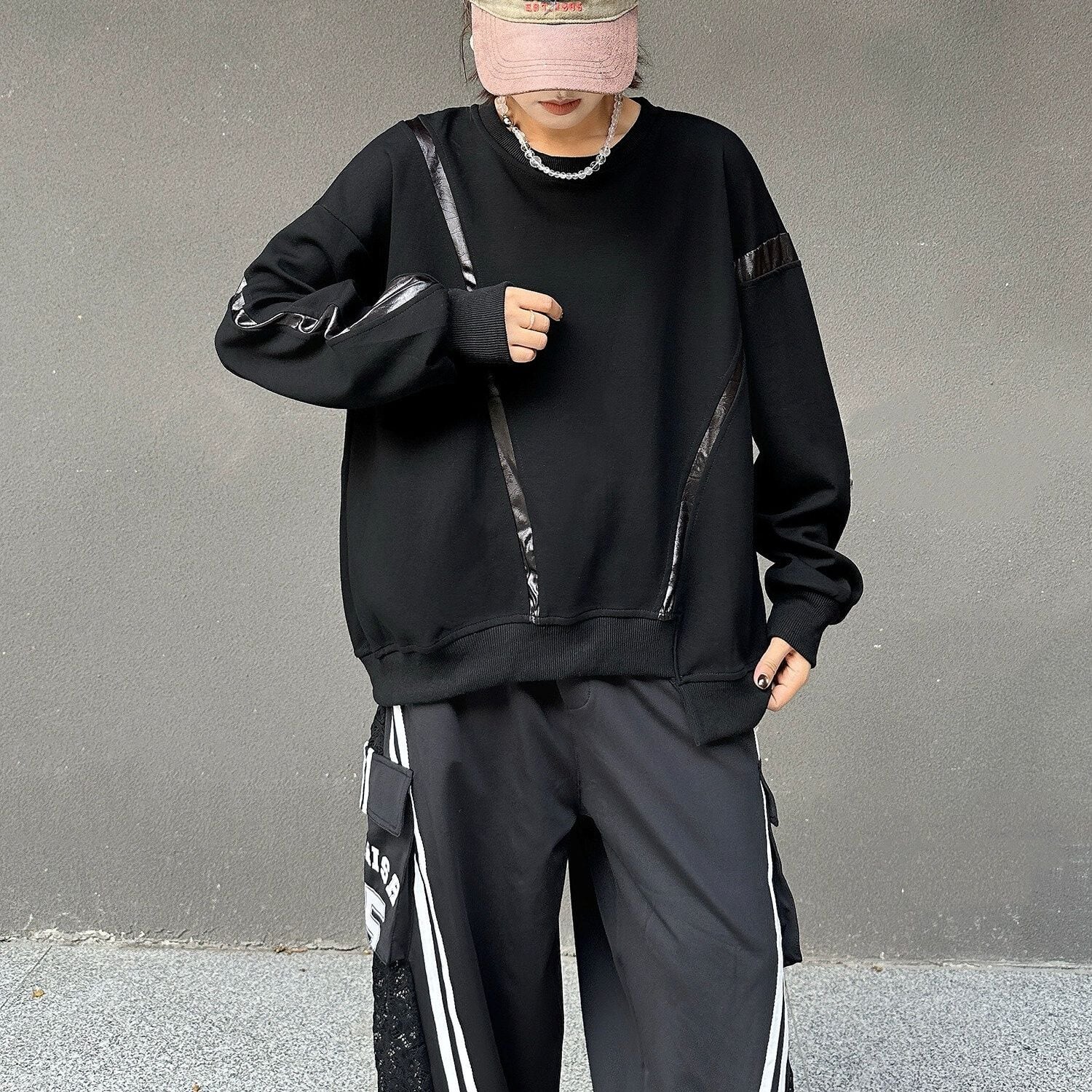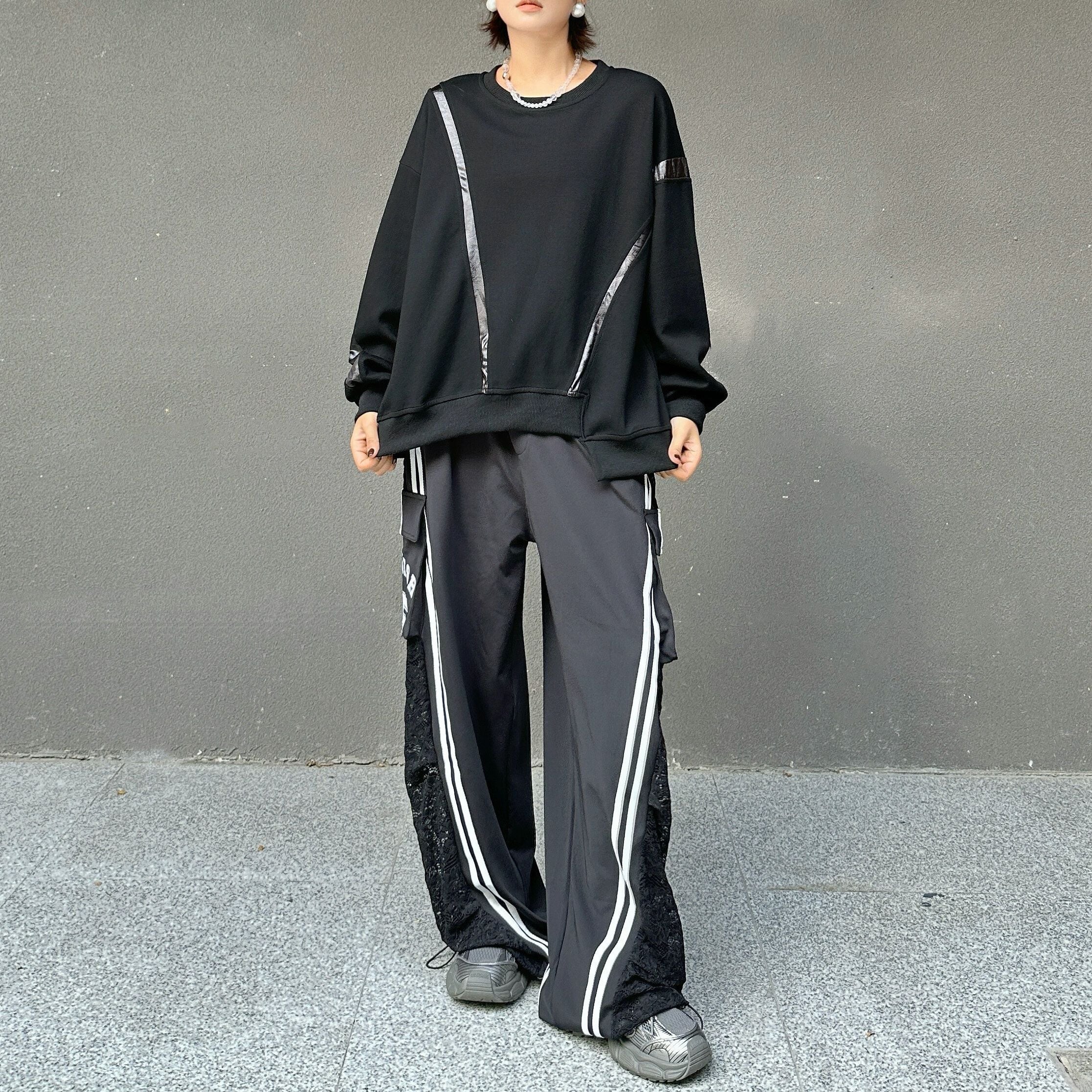 LINE STITCH IRREGULAR HEM ROUND NECK SWEAT SHIRT 3colors M-15221