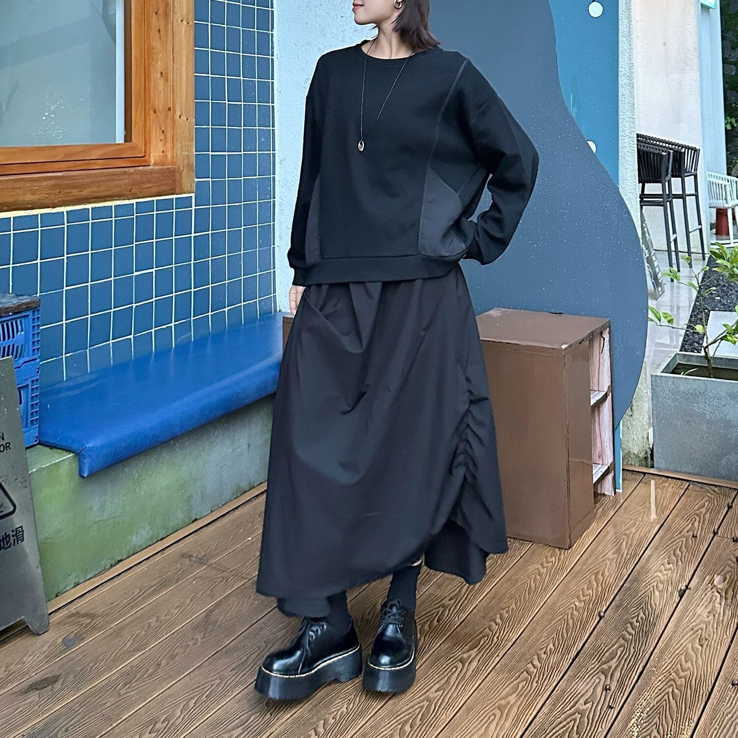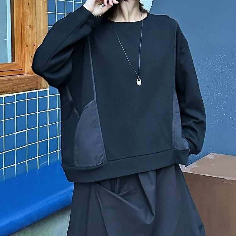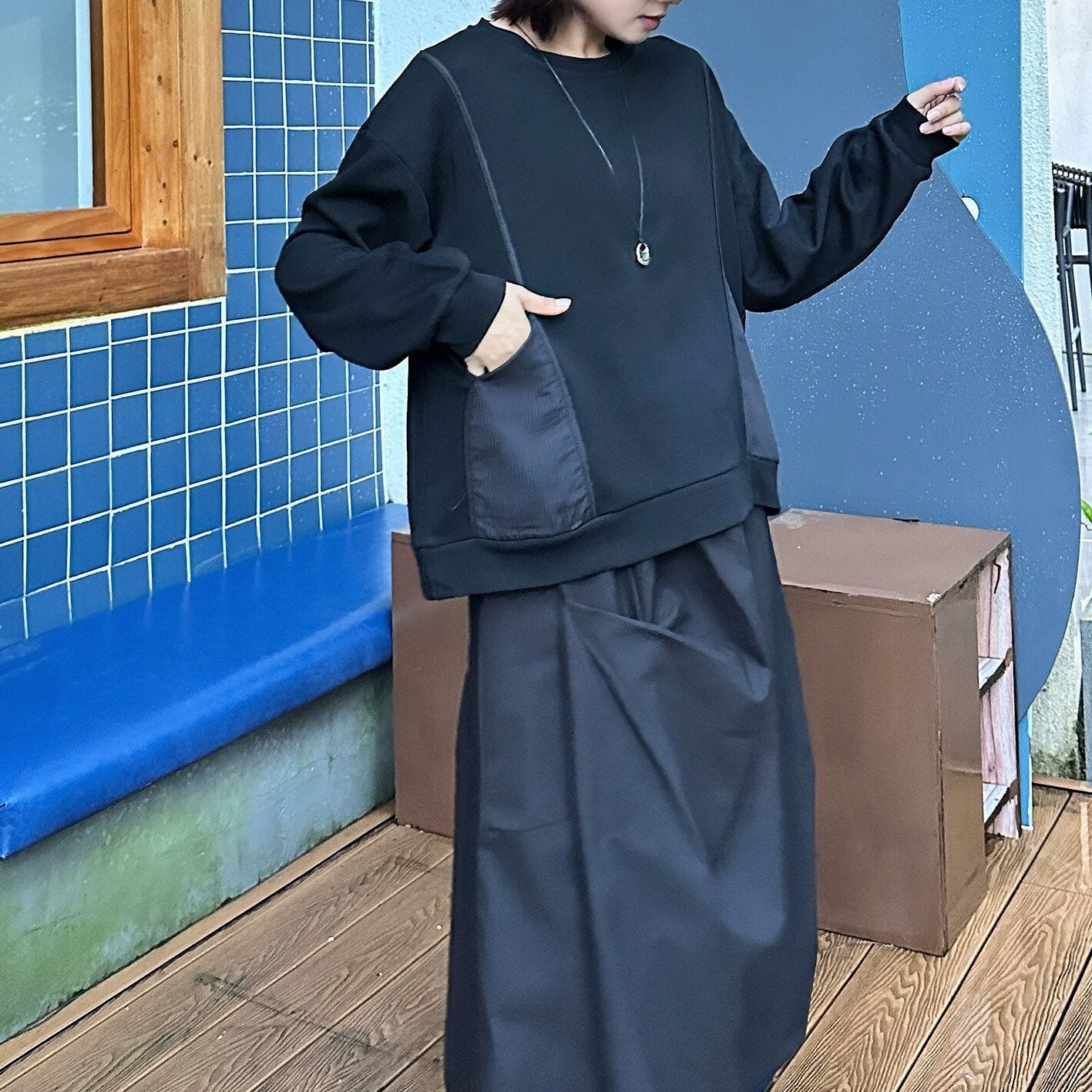 SOLID STITCH DESIGN POCKET ROUND NECK SWEAT SHIRT 3colors M-15222