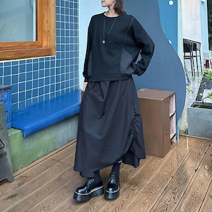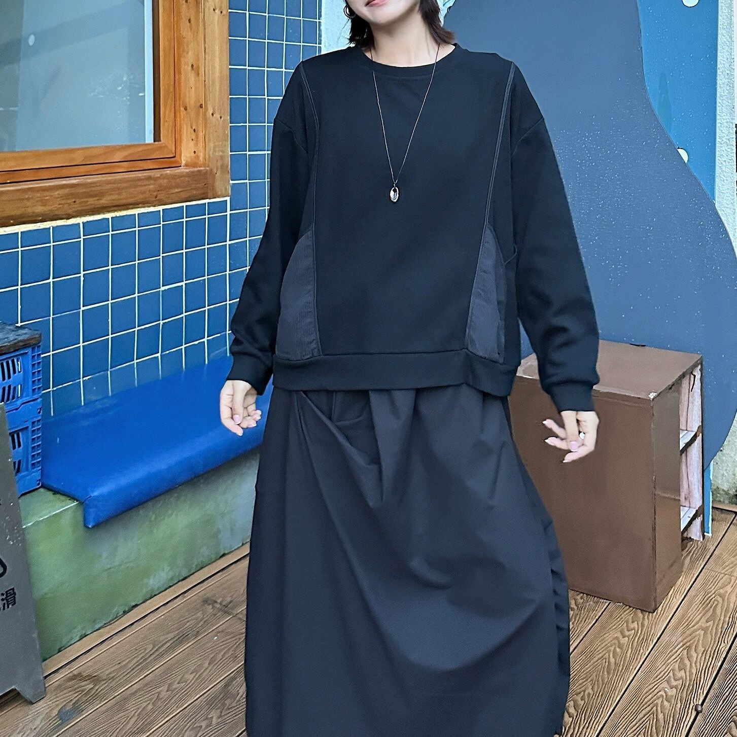 スティッチ飾りのようなデザインポケットがキュートな、ラウンドネックのスウェットシャツです。単色のシンプルなデザインで何にでも合わせやすい、動きやすい区着心地の良いアイテムです。色は3色から選べます。