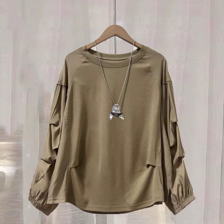 デザインプリーツで作られたシルエットがキュートなシャツ袖がスティッチされた、ラウンドネックの長袖Tシャツです。シンプルなデザインながらもガーリーさのあるデザインが魅力的な、単色で合わせやすいアイテムです。色は5色から選べます。 SIZE:※測り方によって2-3cmの差が生じる場合がございます。 【FREE SIZE】バスト100-105cm 着丈59cm COLOR:White、Black、Khaki、Purple、Camel 素材:ポリエステル、その他 STYLE CALENDAR:春〇 夏〇 秋◎ 冬〇 お届けについて こちらの商品は海外店舗より直接発送となる為、 ご決済から到着までは、多くの場合【10日-2週間前後】でお届けしております。 ※在庫状況や輸送の混雑により、4週間前後かかる場合がございます。 注意事項 ・商品在庫切れにより注文キャンセルとさせていただく恐れもございますので、予めご了承くださいませ。 ・仕入れ工場を変えることがあるため、記載サイズと若干異なる場合がございます。 ・商品の色味は、お手持ちのスマートフォンの画面によって実物と若干異なる場合がございます。 ・イメージ違いやサイズ交換等、お客さまご都合による交換・返品はご遠慮ください。 送料について 全国一律580円。ただし10,000円以上のご注文で送料無料となります。 お支払い方法について ・クレジットカード決済(VISA/Mastercard/JCB/アメリカン・エクスプレス/ Diners Club) ・コンビニ決済/Pay-easy ※前払いのお支払い方法 ・Pay ID あと払い(コンビニ払い、口座振替) ※あと払いのお支払い方法 ・キャリア決済(d払い/au PAY(auかんたん決済)/ソフトバンク・ワイモバイルまとめて支払い) 管理番号:M-15226