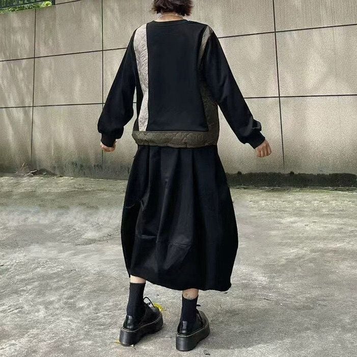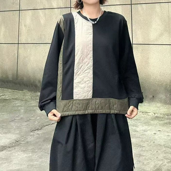 STITCH DRAWCORD HEM DESIGN ROUND NECK SWEAT SHIRT 3colors M-15249