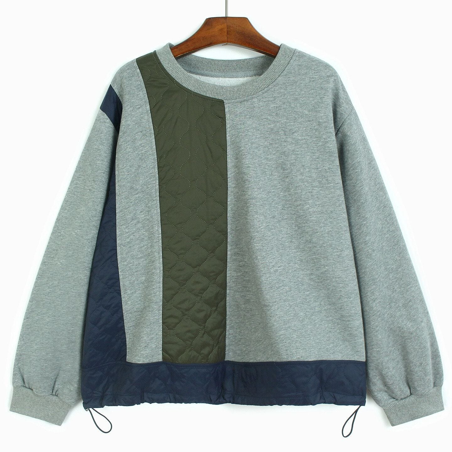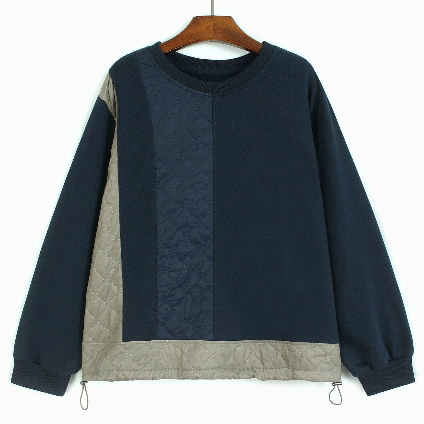 キルティングスティッチデザインがキュートな、ラウンドネック・長袖・ドローコードヘムのスウェットシャツです。裾はドローコードでラインを調節できます。ゆったりとしたシルエットで着心地の良いカジュアルアイテムです。色は3色から選べます。