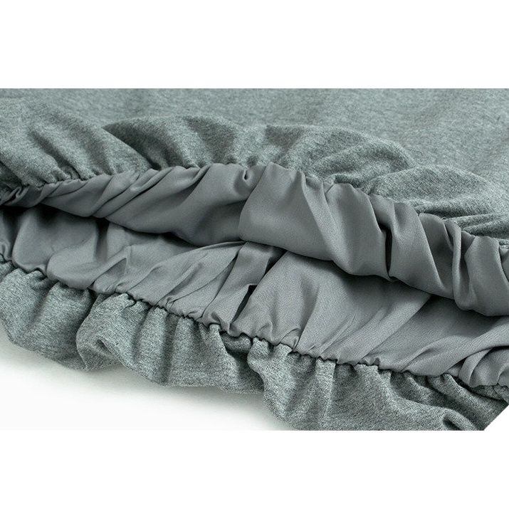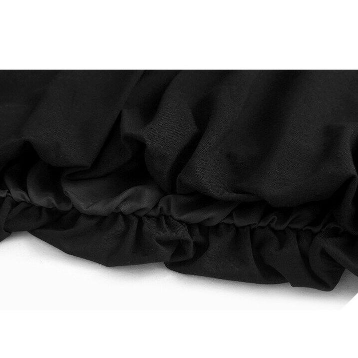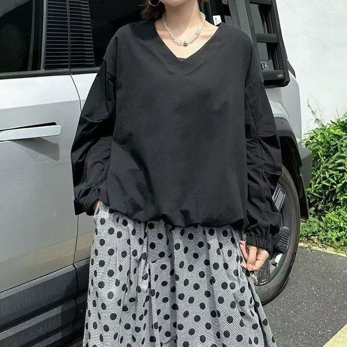 SOLID V-NECK LANTERN HEM PULLOVER TOP & DOT MIDI SKIRT 2colors M-15251