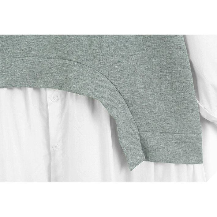 FAKE-2-PIECE DESIGN A-LINE PULLOVER TUNIC SHIRT 3colors M-15252