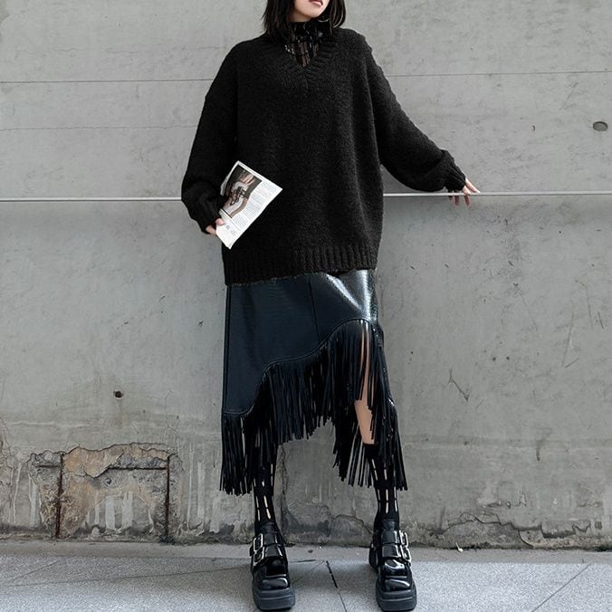 SOLID V-NECK PULLOVER TUNIC KNIT 2colors M-15269