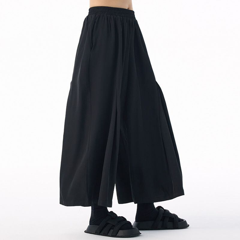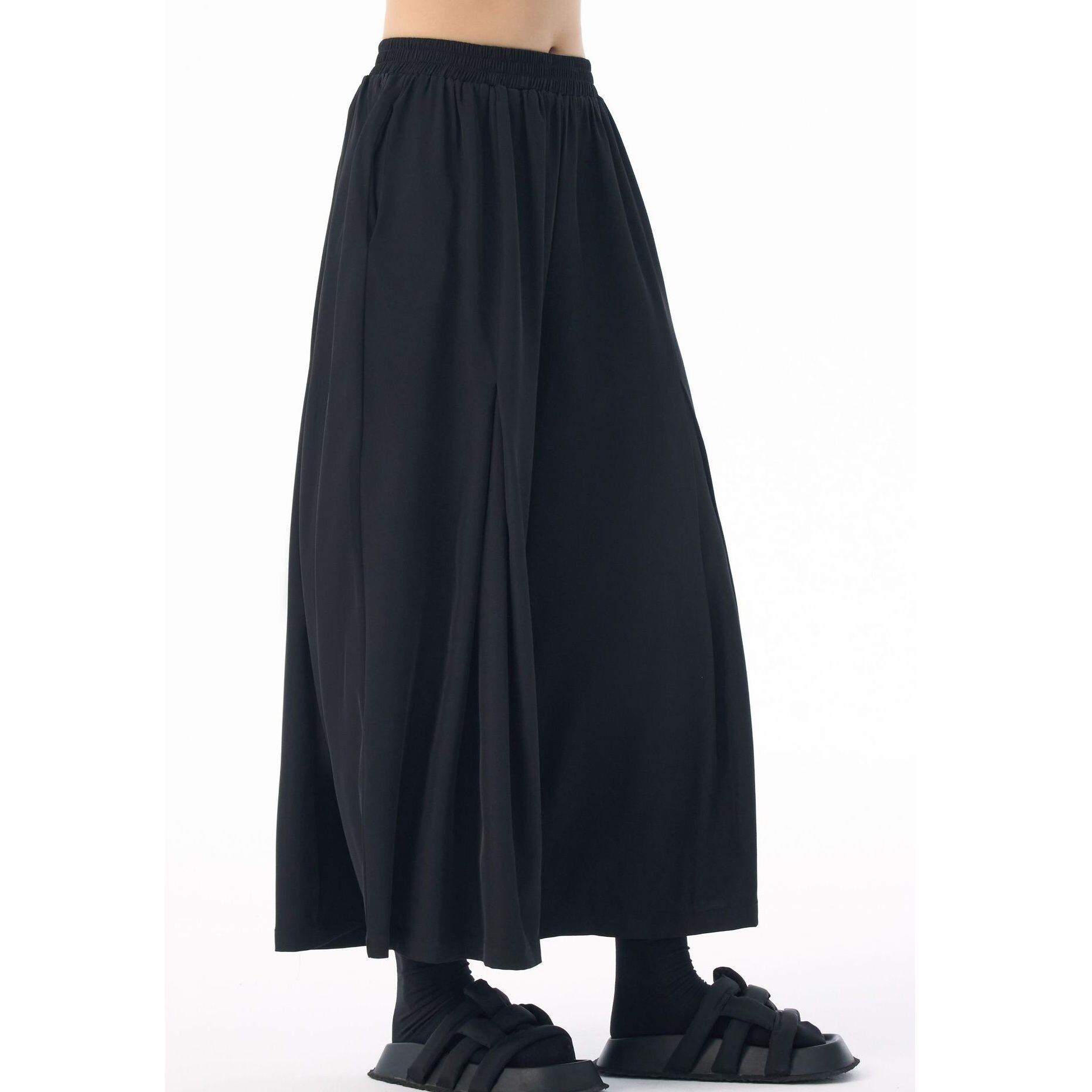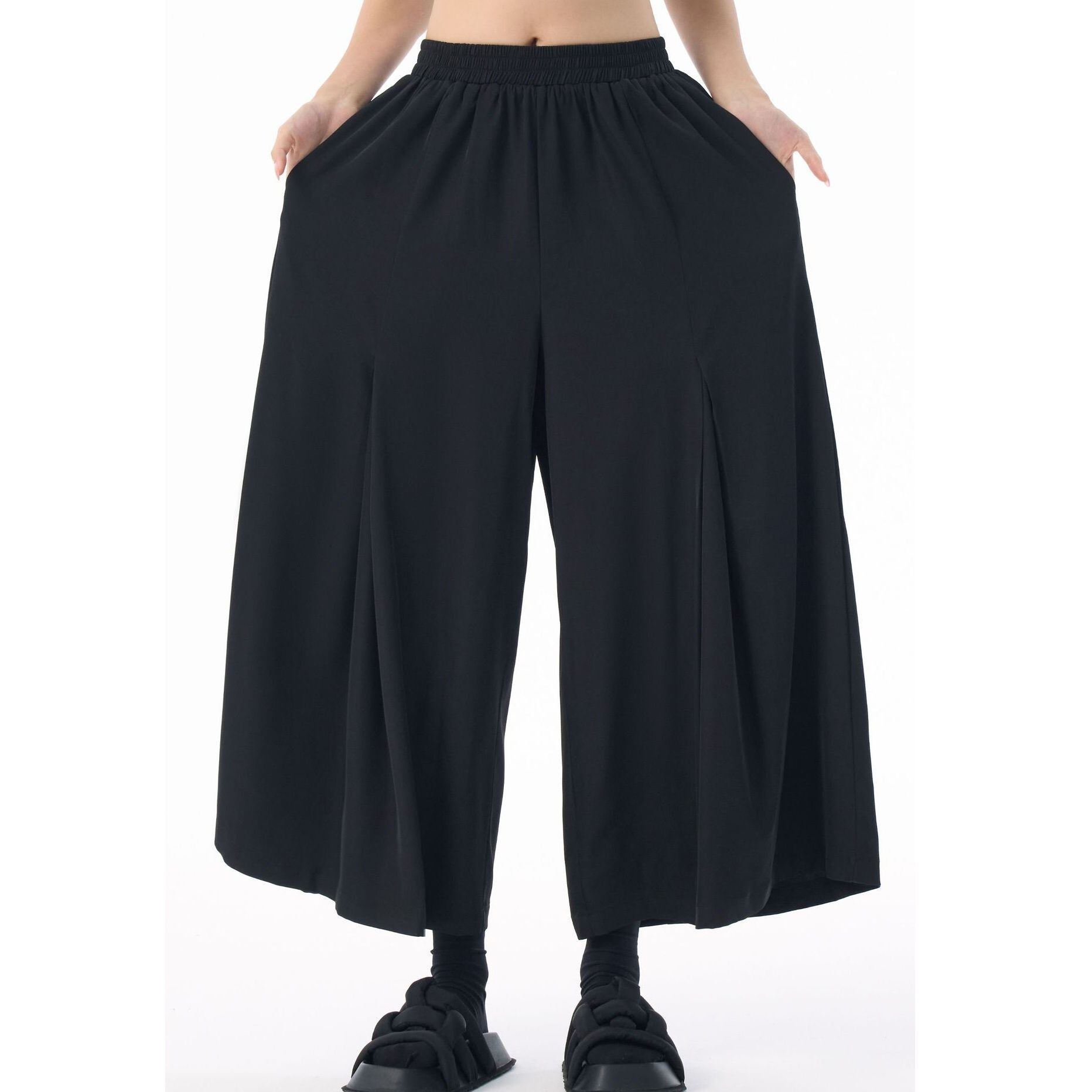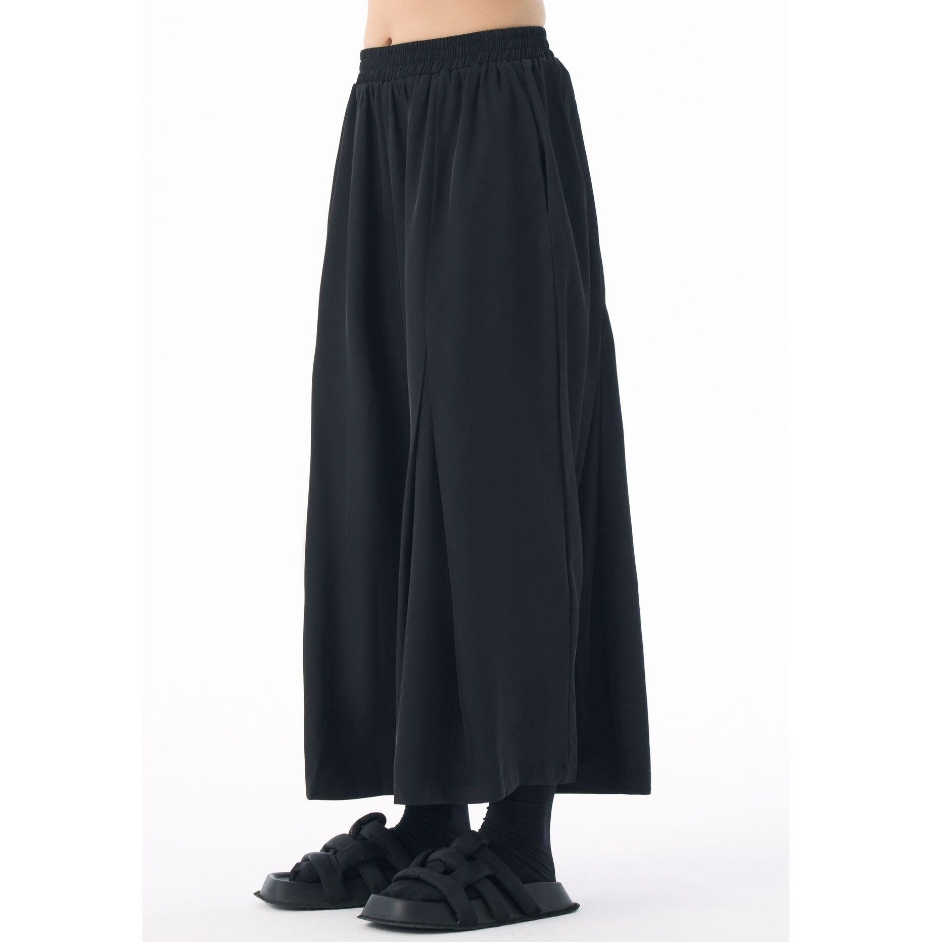 SOLID ELASTIC WAIST A-LINE WIDE LEG CROPPED PANTS 2colors M-15276
