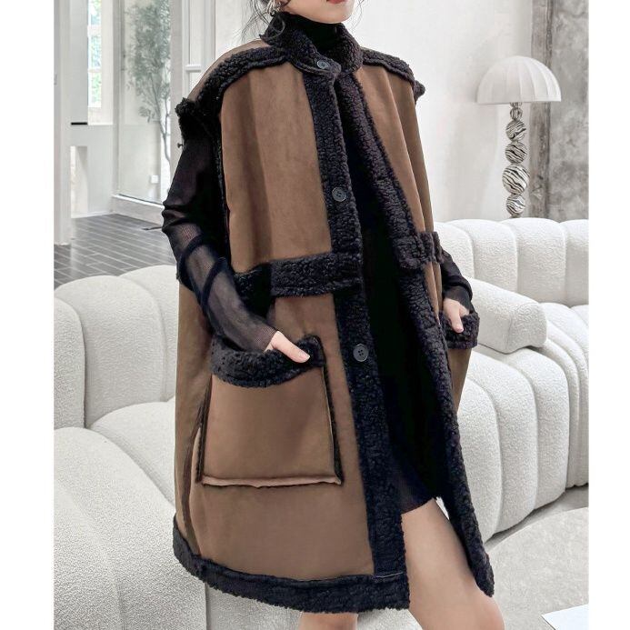 SHERPA SUEDE REVERSIBLE MIDI SLEEVELESS COAT 1color M-15301
