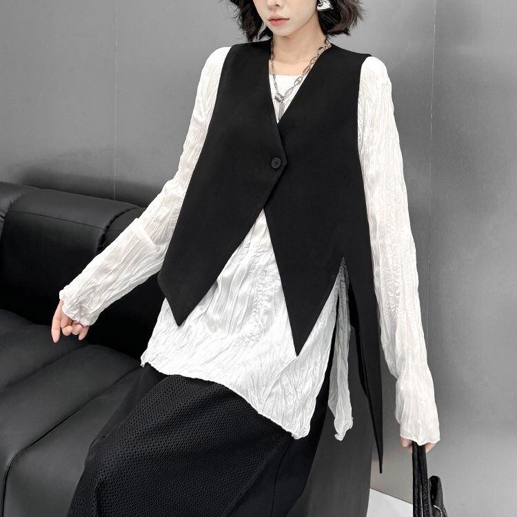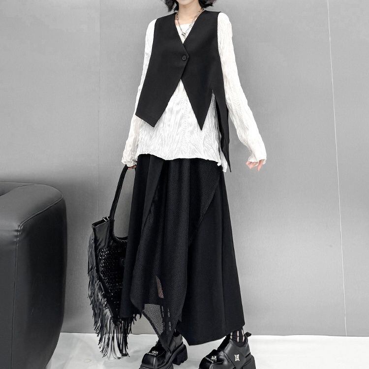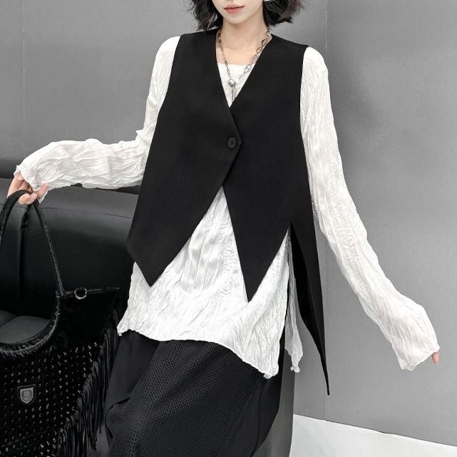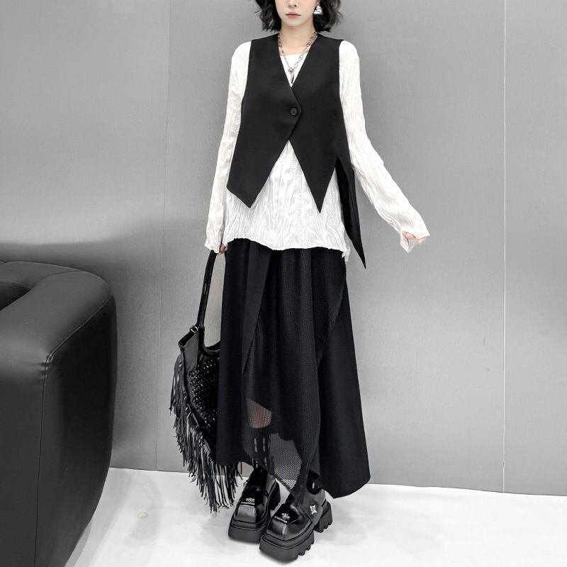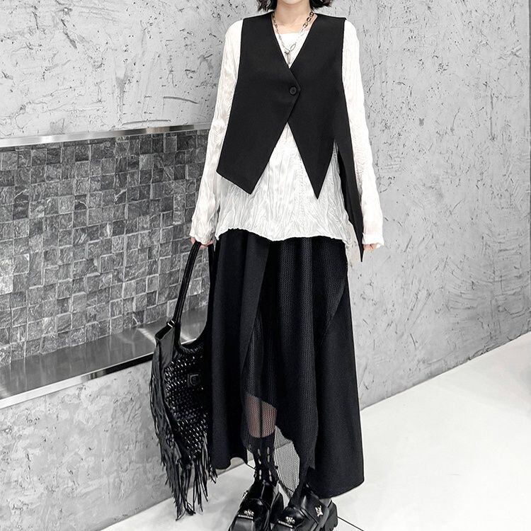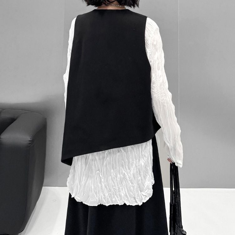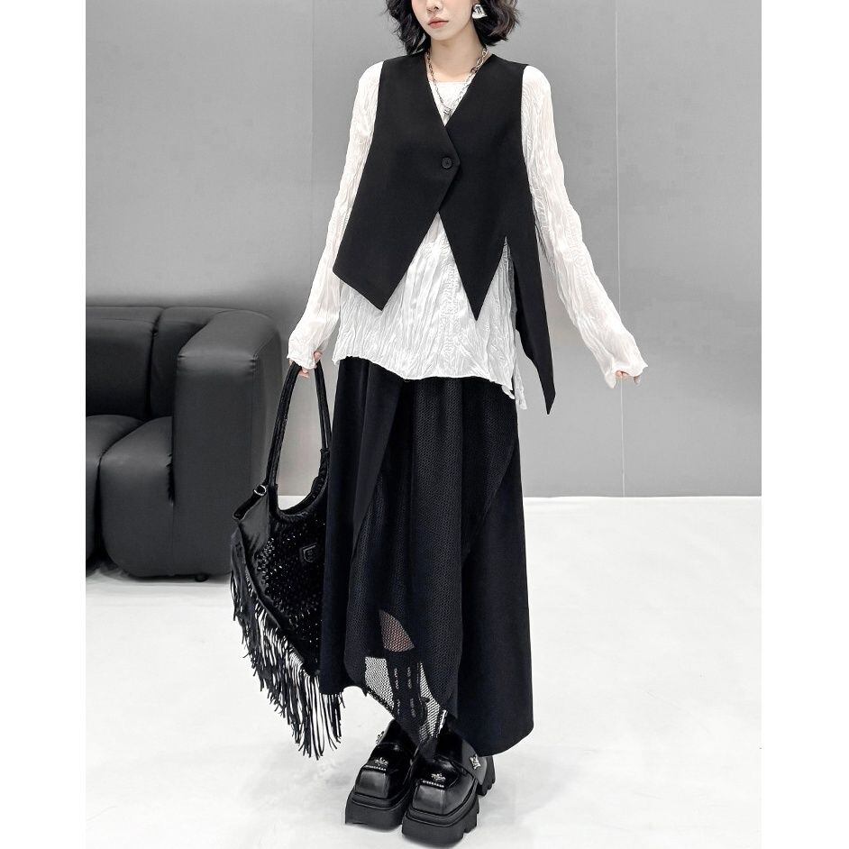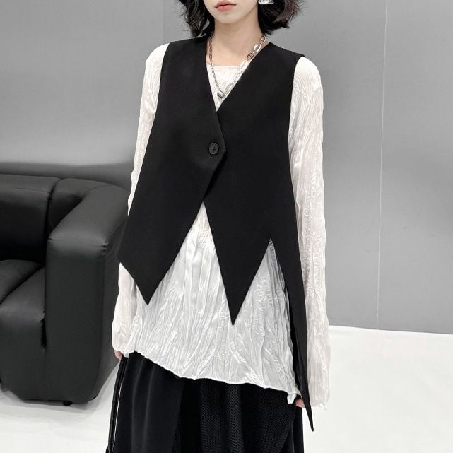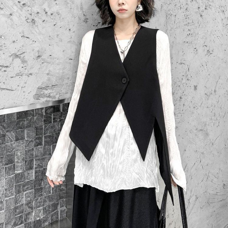 BLACK V-NECK ASYMMETRIC DESIGN VEST 1color M-15314