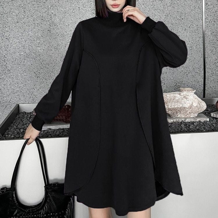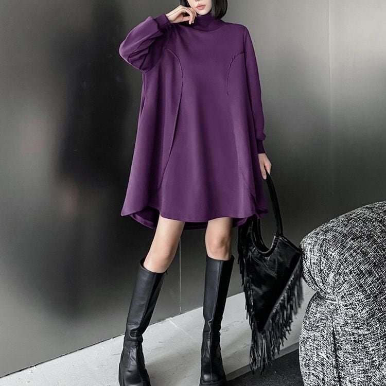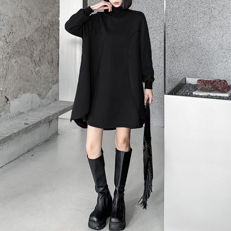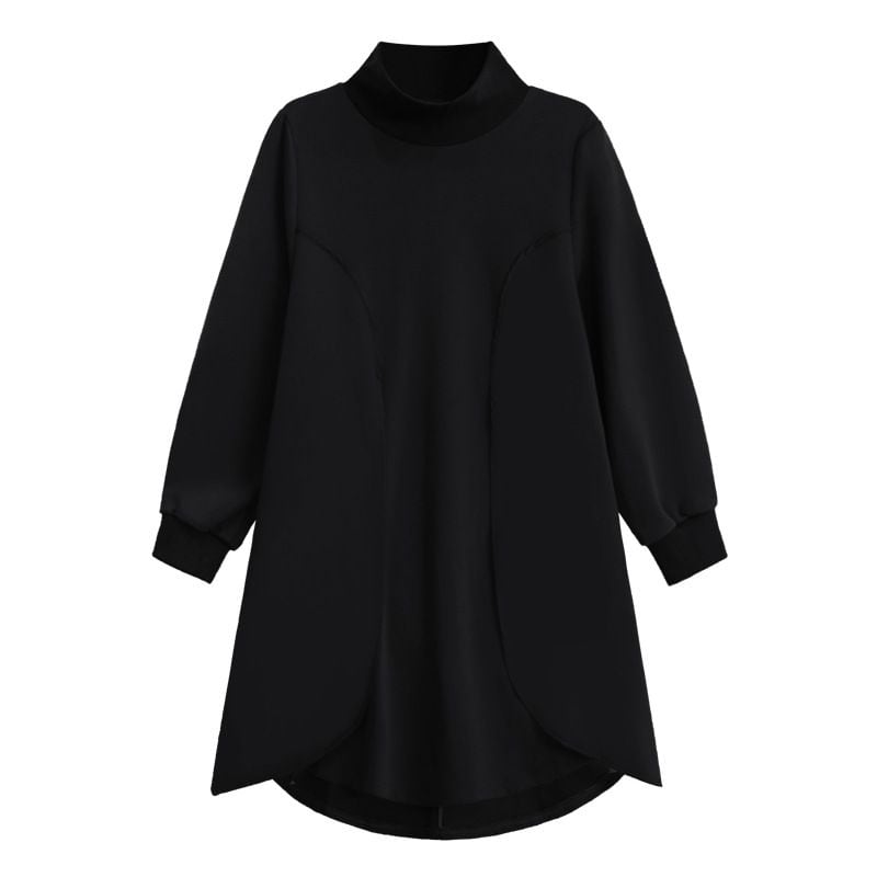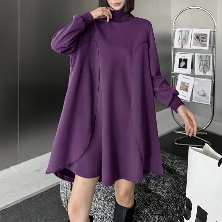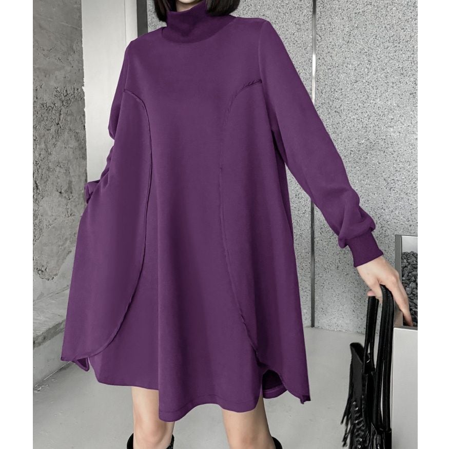 SOLID HIGH NECK A-LINE MINI PULLOVER DESIGN DRESS 2colors M-15323