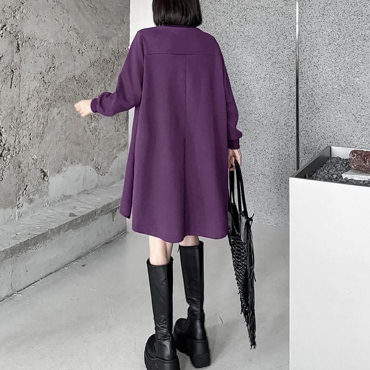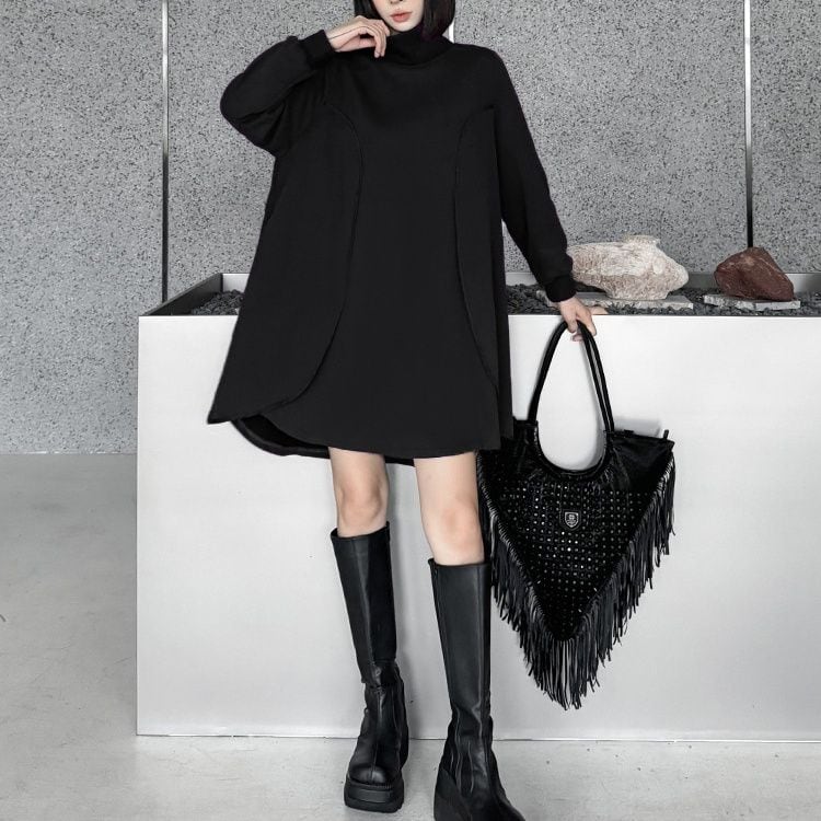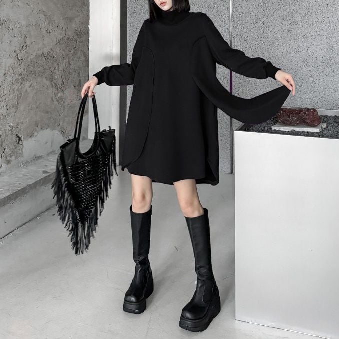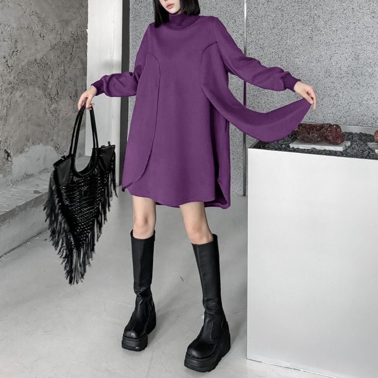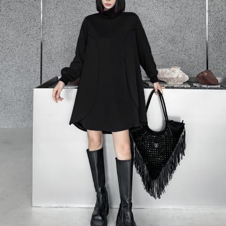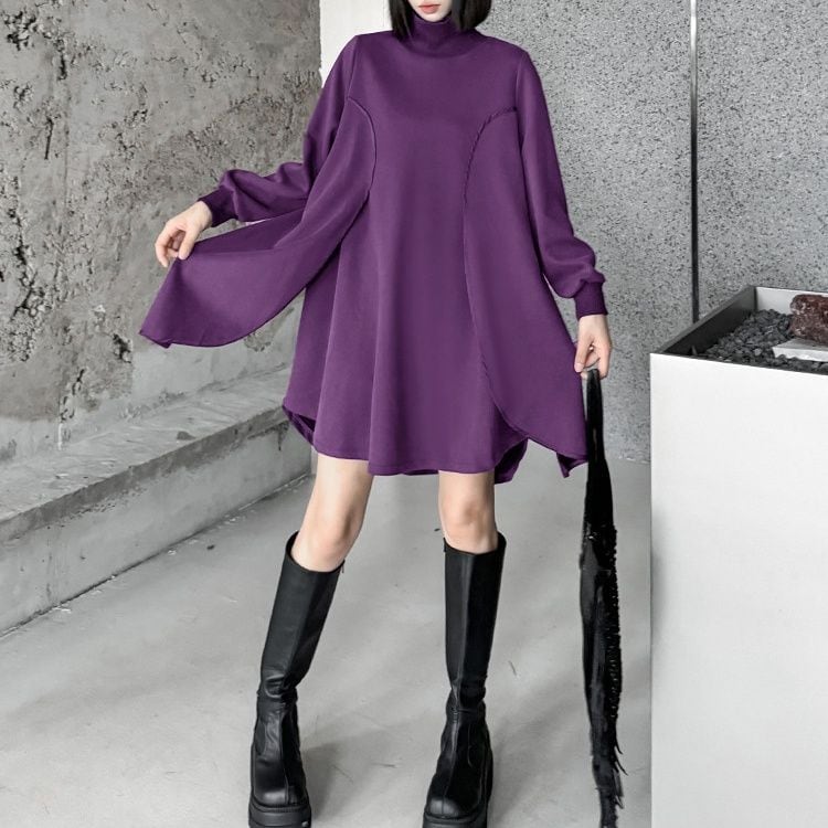 SOLID HIGH NECK A-LINE MINI PULLOVER DESIGN DRESS 2colors M-15323