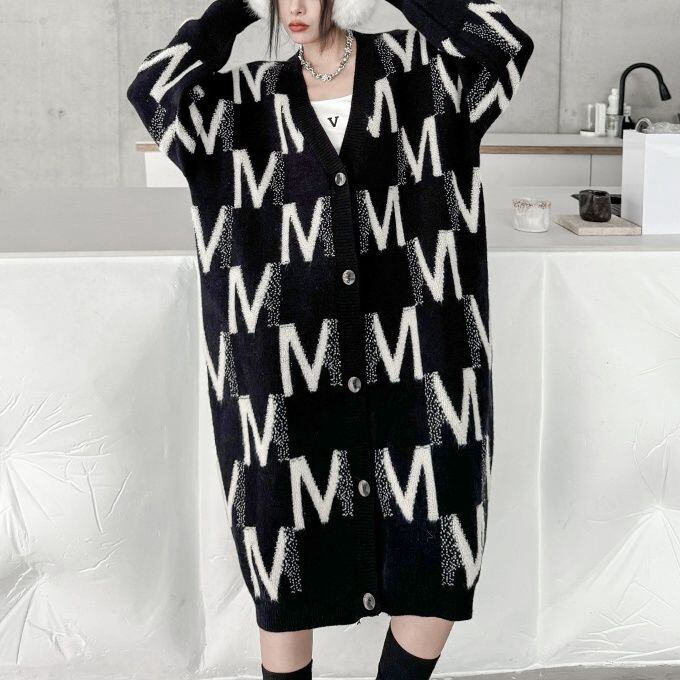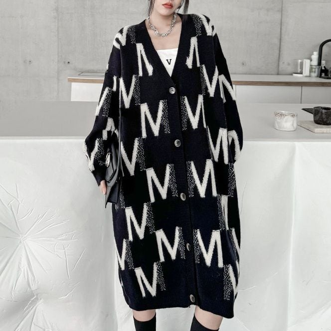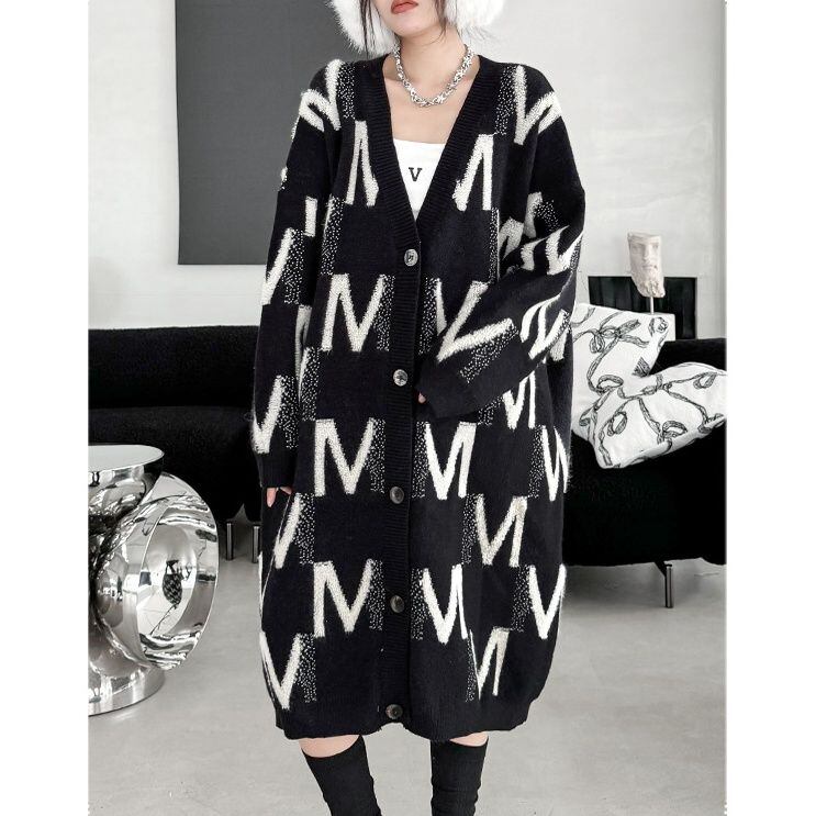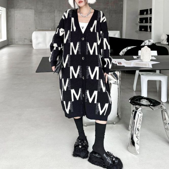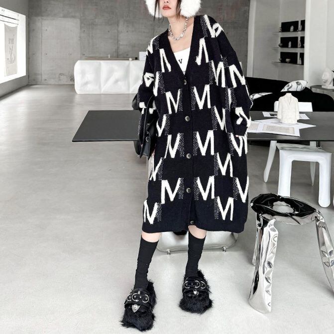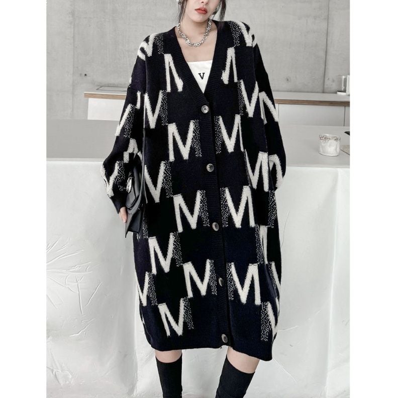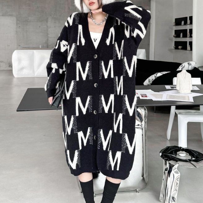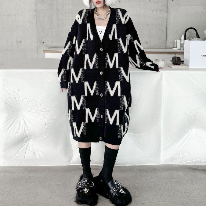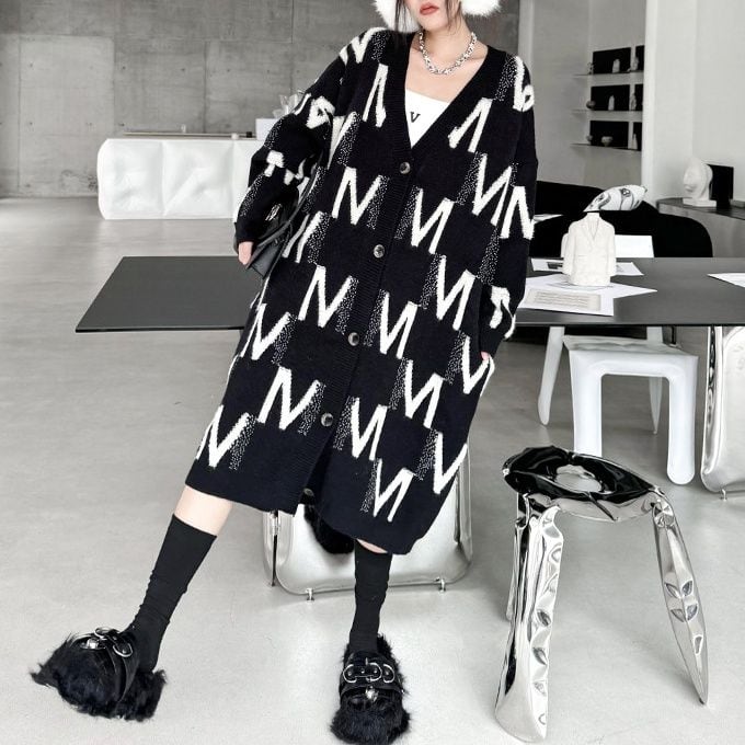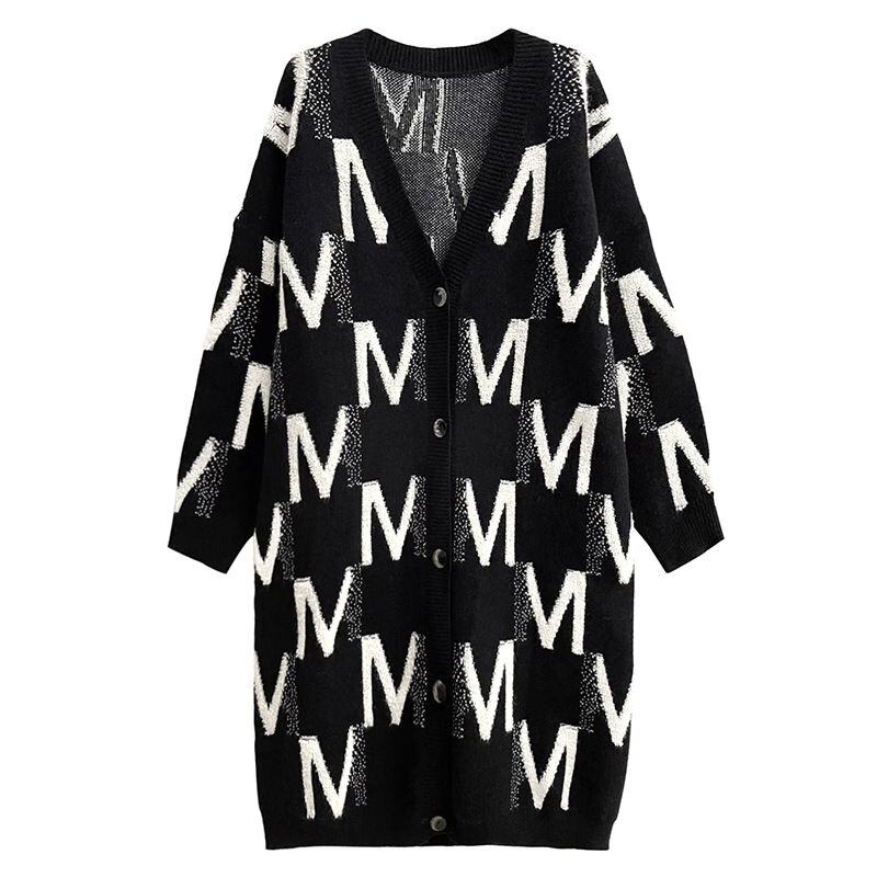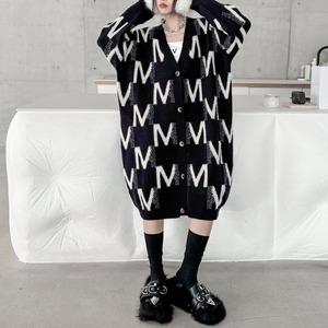 MONOTONE LETTER V-NECK LONG KNIT CARDIGAN 1color M-15326