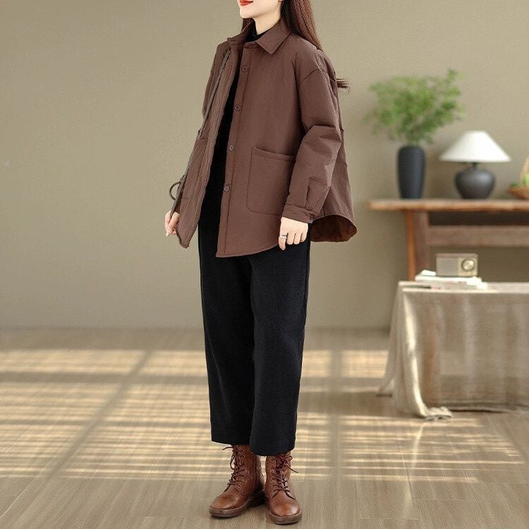 単色のシンプルなデザインが嬉しい、ポロ襟・長袖・ラウンドカットの中綿・シャツジャケットです。ドロップショルダーながらもすっきりとしたシルエットで、しっかり温かいカジュアルアイテムです。ブラックとブラウンの2色から選べます。 SIZE:※測り方によって2-3cmの差が生じる場合がございます。 【L】バスト120cm 肩幅60cm 袖丈50cm 着丈70cm 【XL】バスト124cm 肩幅61cm 袖丈51cm 着丈71cm 【2XL】バスト128cm 肩幅62cm 袖丈52cm 着丈72cm COLOR:Black、Brown 素材:ポリエステル、その他 モデル着用サイズ:L モデル情報:身長161cm 体重49kg STYLE CALENDAR:春〇 夏△ 秋◎ 冬◎ お届けについて こちらの商品は海外店舗より直接発送となる為、 ご決済から到着までは、多くの場合【10日-2週間前後】でお届けしております。 ※在庫状況や輸送の混雑により、4週間前後かかる場合がございます。 注意事項 ・商品在庫切れにより注文キャンセルとさせていただく恐れもございますので、予めご了承くださいませ。 ・仕入れ工場を変えることがあるため、記載サイズと若干異なる場合がございます。 ・商品の色味は、お手持ちのスマートフォンの画面によって実物と若干異なる場合がございます。 ・イメージ違いやサイズ交換等、お客さまご都合による交換・返品はご遠慮ください。 送料について 全国一律580円。ただし10,000円以上のご注文で送料無料となります。 お支払い方法について ・クレジットカード決済(VISA/Mastercard/JCB/アメリカン・エクスプレス/ Diners Club) ・コンビニ決済/Pay-easy ※前払いのお支払い方法 ・Pay ID あと払い(コンビニ払い、口座振替) ※あと払いのお支払い方法 ・キャリア決済(d払い/au PAY(auかんたん決済)/ソフトバンク・ワイモバイルまとめて支払い) 管理番号:M-15354
