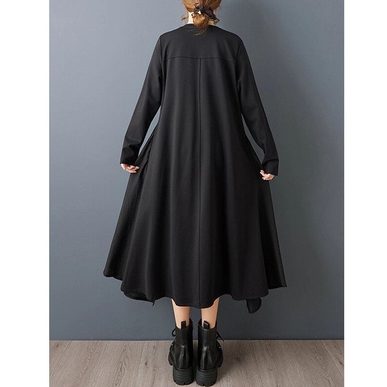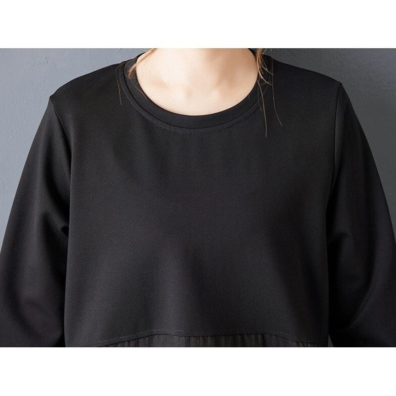 PLEATS STITCH A-LINE HIGH-LOW DESIGN LONG SLEEVES T-SHIRT 1color M-15361