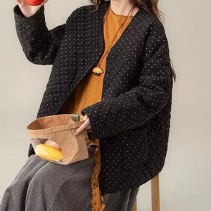 ブラック地の小さなドット柄がキュートな、Vネック・長袖・ショート丈の中綿ジャケットです。ダイヤモンド柄にスティッチされたキルティング素材が柔らかな、ゆったりとしたシルエットで合わせやすいカジュアルアイテムです。 SIZE:※測り方によって2-3cmの差が生じる場合がございます。 【M】バスト116cm 肩幅54cm 袖丈57cm 着丈69cm 【L】バスト120cm 肩幅55cm 袖丈58cm 着丈70cm 【XL】バスト124cm 肩幅56cm 袖丈59cm 着丈71cm 【2XL】バスト128cm 肩幅57cm 袖丈60cm 着丈72cm COLOR:Design 素材:ポリエステル、その他 STYLE CALENDAR:春〇 夏△ 秋〇 冬◎ お届けについて こちらの商品は海外店舗より直接発送となる為、 ご決済から到着までは、多くの場合【10日-2週間前後】でお届けしております。 ※在庫状況や輸送の混雑により、4週間前後かかる場合がございます。 注意事項 ・商品在庫切れにより注文キャンセルとさせていただく恐れもございますので、予めご了承くださいませ。 ・仕入れ工場を変えることがあるため、記載サイズと若干異なる場合がございます。 ・商品の色味は、お手持ちのスマートフォンの画面によって実物と若干異なる場合がございます。 ・イメージ違いやサイズ交換等、お客さまご都合による交換・返品はご遠慮ください。 送料について 全国一律580円。ただし10,000円以上のご注文で送料無料となります。 お支払い方法について ・クレジットカード決済(VISA/Mastercard/JCB/アメリカン・エクスプレス/ Diners Club) ・コンビニ決済/Pay-easy ※前払いのお支払い方法 ・Pay ID あと払い(コンビニ払い、口座振替) ※あと払いのお支払い方法 ・キャリア決済(d払い/au PAY(auかんたん決済)/ソフトバンク・ワイモバイルまとめて支払い) 管理番号:M-15377