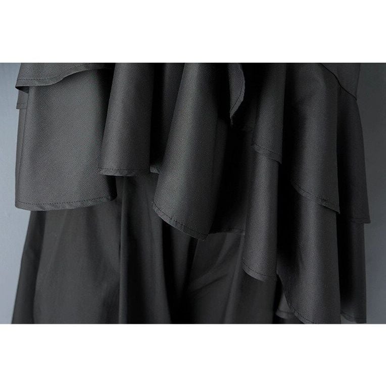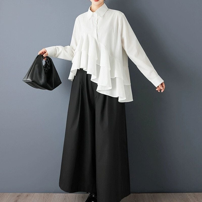 SOLID ASYMMETRIC FRILLED HEM DESIGN SHIRT 2colors M-15379