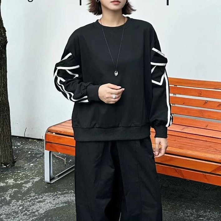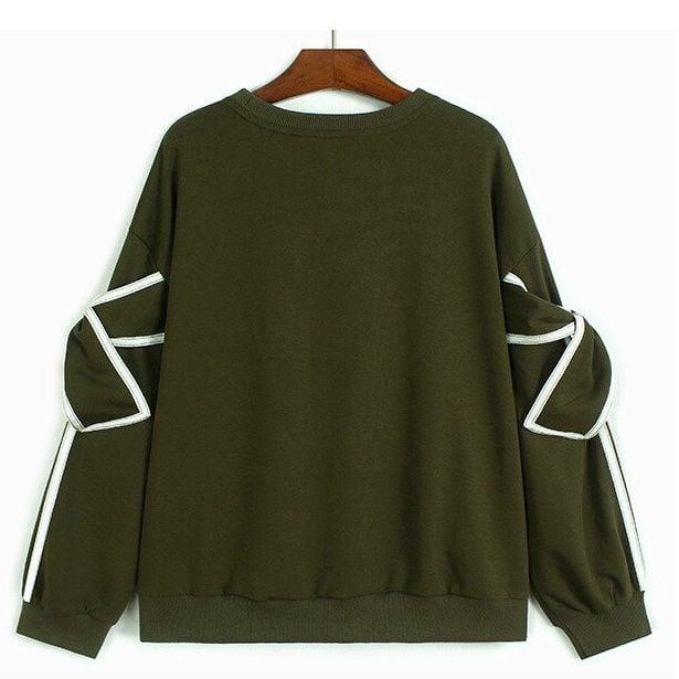 BOW MOTIF SLEEVES ROUND NECK SWEAT SHIRT 3colors M-15393