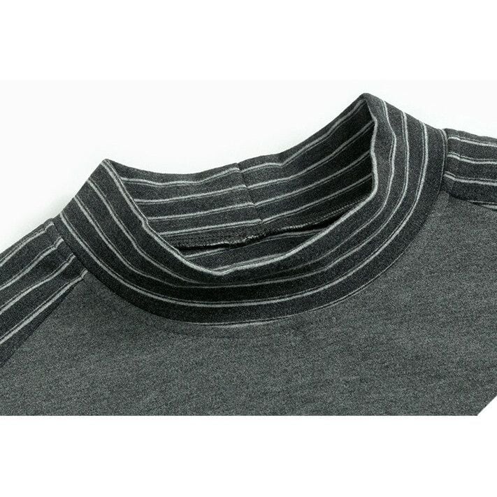 STRIPE STITCH DESIGN MOCK NECK LONG SLEEVES T-SHIRT 1color M-15405