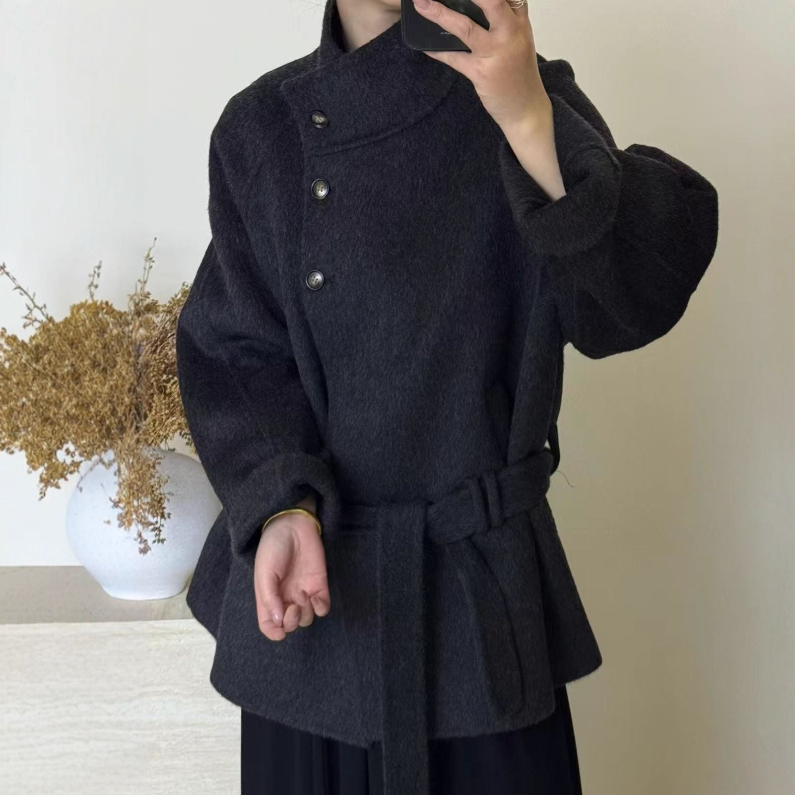 スタンドカラーにみっつボタンのデザインがエレガントで美しい、長袖・ショート丈のウールコートです。ウエスト用にストラップベルトが付いた、都会的で上品な印象のアイテムです。色は3色から選べます。 SIZE:※測り方によって2-3cmの差が生じる場合がございます。 【S】バスト124cm 袖丈68cm 着丈70cm 【M】バスト128cm 袖丈69cm 着丈71cm COLOR:Brown、Ivory、Gray 素材:ポリエステル、その他 モデル情報:身長172cm 体重59kg STYLE CALENDAR:春〇 夏△ 秋◎ 冬◎ お届けについて こちらの商品は海外店舗より直接発送となる為、 ご決済から到着までは、多くの場合【10日-2週間前後】でお届けしております。 ※在庫状況や輸送の混雑により、4週間前後かかる場合がございます。 注意事項 ・商品在庫切れにより注文キャンセルとさせていただく恐れもございますので、予めご了承くださいませ。 ・仕入れ工場を変えることがあるため、記載サイズと若干異なる場合がございます。 ・商品の色味は、お手持ちのスマートフォンの画面によって実物と若干異なる場合がございます。 ・イメージ違いやサイズ交換等、お客さまご都合による交換・返品はご遠慮ください。 送料について 全国一律580円。ただし10,000円以上のご注文で送料無料となります。 お支払い方法について ・クレジットカード決済(VISA/Mastercard/JCB/アメリカン・エクスプレス/ Diners Club) ・コンビニ決済/Pay-easy ※前払いのお支払い方法 ・Pay ID あと払い(コンビニ払い、口座振替) ※あと払いのお支払い方法 ・キャリア決済(d払い/au PAY(auかんたん決済)/ソフトバンク・ワイモバイルまとめて支払い) 管理番号:M-15429