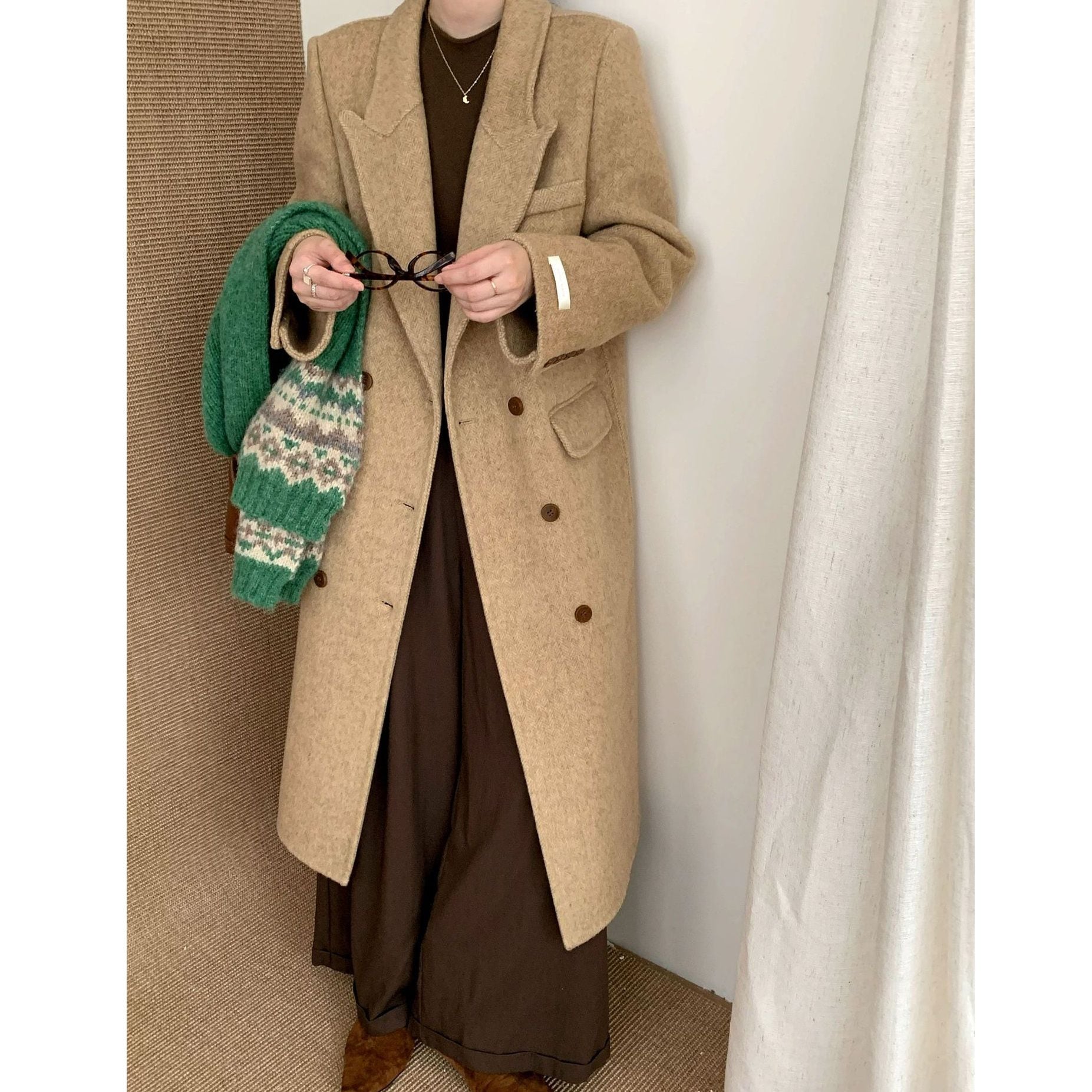 ピークドラペルにダブルブレストのデザインがスタイリッシュな、ロング丈のウールコートです。スーツのジャケットのようにしっかりとしたショルダーラインが上品な、オンでもオフでも使える着まわし力の高いアイテムです。色は3色から選べます。 SIZE:※測り方によって2-3cmの差が生じる場合がございます。 【S】バスト110cm 肩幅43cm 袖丈58cm 着丈113cm 【M】バスト114cm 肩幅44cm 袖丈59cm 着丈114cm COLOR:Brown、Camel、Gray 素材:ポリエステル、その他 モデル情報:身長172cm 体重59kg STYLE CALENDAR:春〇 夏△ 秋◎ 冬◎ お届けについて こちらの商品は海外店舗より直接発送となる為、 ご決済から到着までは、多くの場合【10日-2週間前後】でお届けしております。 ※在庫状況や輸送の混雑により、4週間前後かかる場合がございます。 注意事項 ・商品在庫切れにより注文キャンセルとさせていただく恐れもございますので、予めご了承くださいませ。 ・仕入れ工場を変えることがあるため、記載サイズと若干異なる場合がございます。 ・商品の色味は、お手持ちのスマートフォンの画面によって実物と若干異なる場合がございます。 ・イメージ違いやサイズ交換等、お客さまご都合による交換・返品はご遠慮ください。 送料について 全国一律580円。ただし10,000円以上のご注文で送料無料となります。 お支払い方法について ・クレジットカード決済(VISA/Mastercard/JCB/アメリカン・エクスプレス/ Diners Club) ・コンビニ決済/Pay-easy ※前払いのお支払い方法 ・Pay ID あと払い(コンビニ払い、口座振替) ※あと払いのお支払い方法 ・キャリア決済(d払い/au PAY(auかんたん決済)/ソフトバンク・ワイモバイルまとめて支払い) 管理番号:M-15462