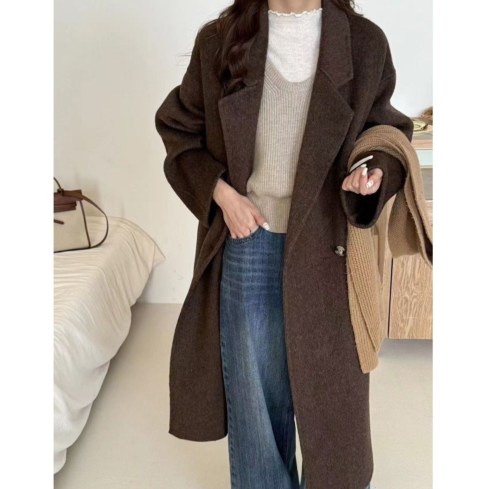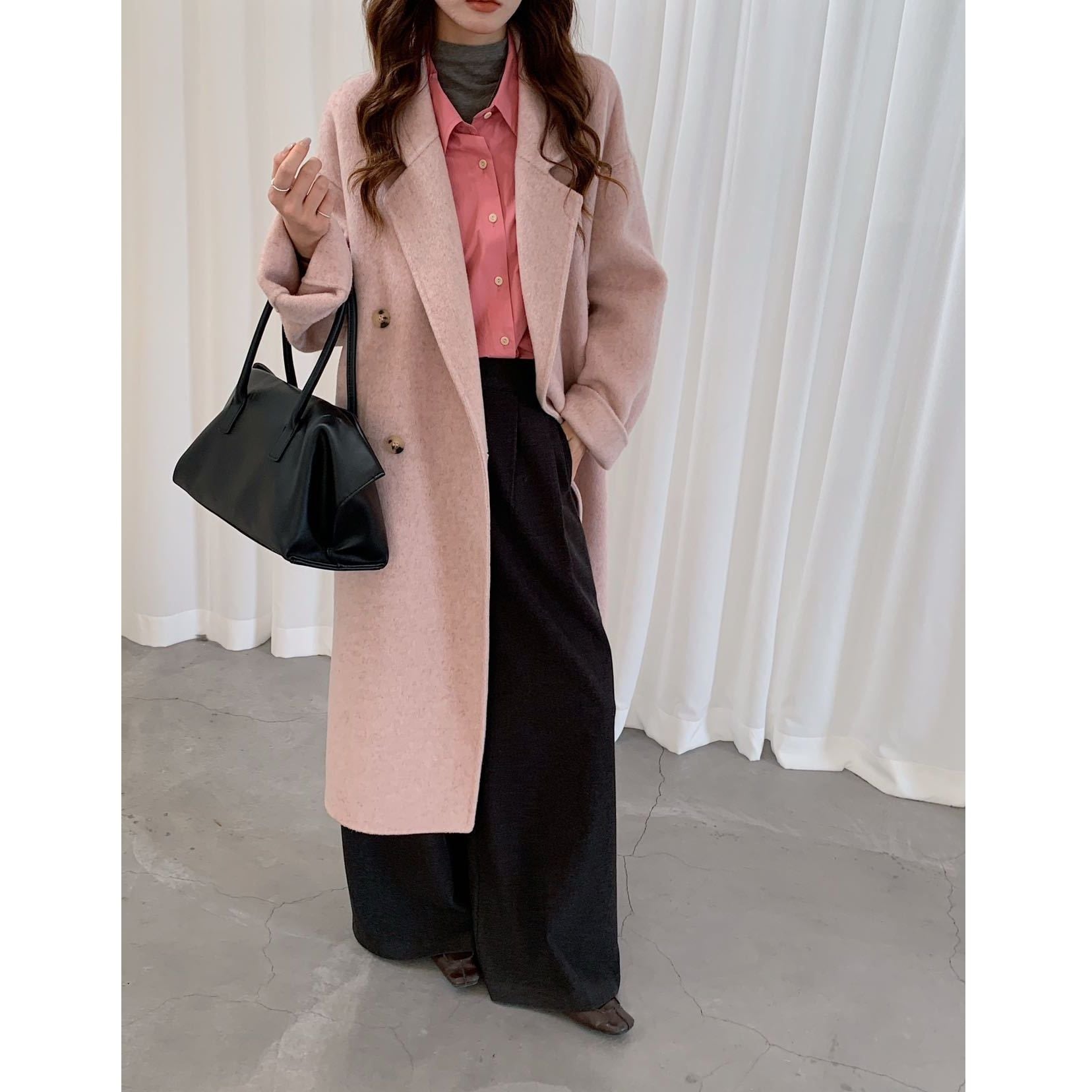 ラペル付きVネックにダブルブレストのデザインがシンプルで使いやすい、ロング丈のウールコートです。ゆったりとしたシルエットに滑らかな手触りの素材がエレガントな、着まわし力の高いアイテムです。色は5色から選べます。 SIZE:※測り方によって2-3cmの差が生じる場合がございます。 【S】バスト110cm 袖丈57cm 着丈108cm 【M】バスト112cm 袖丈59cm 着丈110cm COLOR:Pink、Gray、Beige、Black、Brown 素材:ポリエステル、その他 モデル情報:身長172cm 体重59kg STYLE CALENDAR:春〇 夏△ 秋◎ 冬◎ お届けについて こちらの商品は海外店舗より直接発送となる為、 ご決済から到着までは、多くの場合【10日-2週間前後】でお届けしております。 ※在庫状況や輸送の混雑により、4週間前後かかる場合がございます。 注意事項 ・商品在庫切れにより注文キャンセルとさせていただく恐れもございますので、予めご了承くださいませ。 ・仕入れ工場を変えることがあるため、記載サイズと若干異なる場合がございます。 ・商品の色味は、お手持ちのスマートフォンの画面によって実物と若干異なる場合がございます。 ・イメージ違いやサイズ交換等、お客さまご都合による交換・返品はご遠慮ください。 送料について 全国一律580円。ただし10,000円以上のご注文で送料無料となります。 お支払い方法について ・クレジットカード決済(VISA/Mastercard/JCB/アメリカン・エクスプレス/ Diners Club) ・コンビニ決済/Pay-easy ※前払いのお支払い方法 ・Pay ID あと払い(コンビニ払い、口座振替) ※あと払いのお支払い方法 ・キャリア決済(d払い/au PAY(auかんたん決済)/ソフトバンク・ワイモバイルまとめて支払い) 管理番号:M-15465