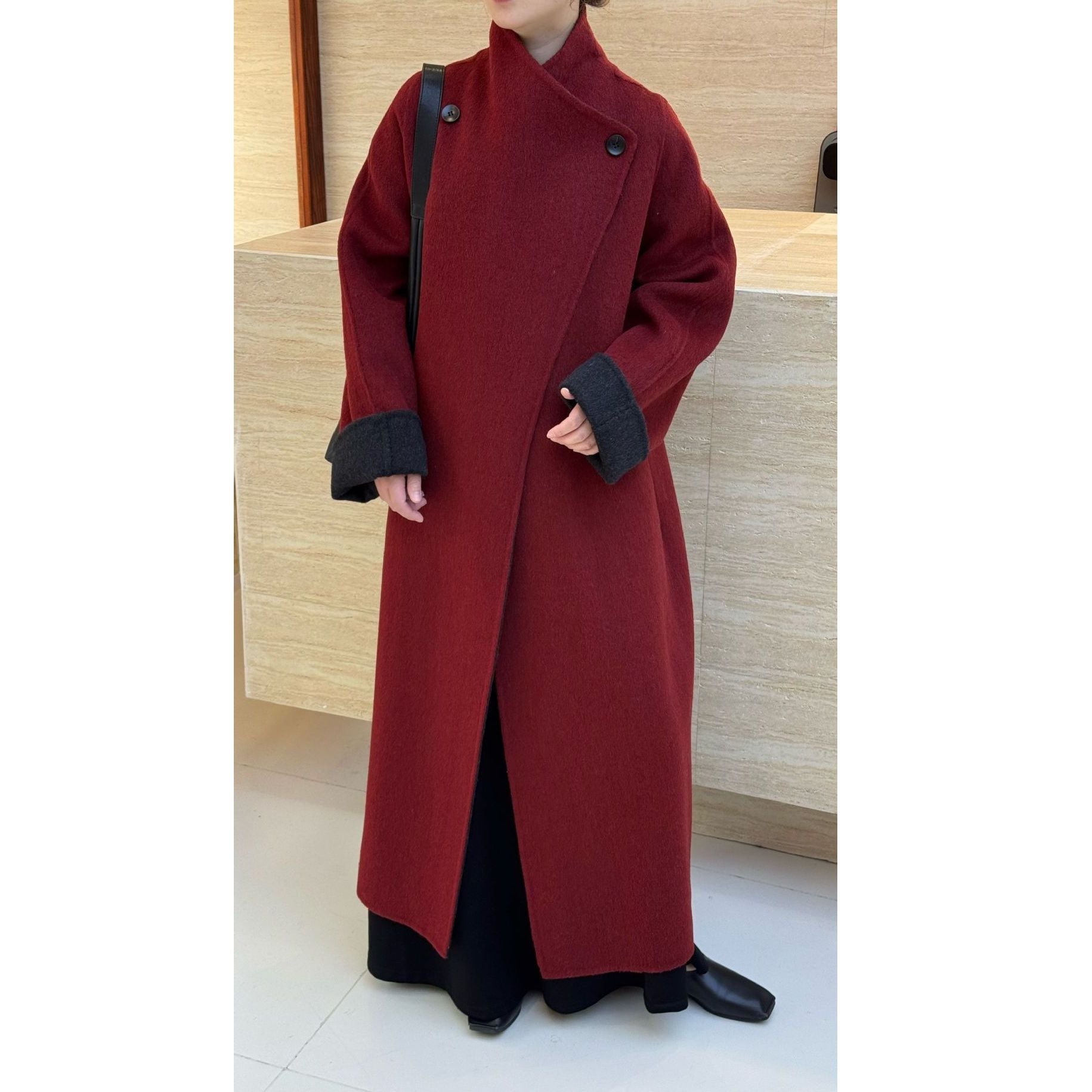 ボトルネックのシルエットが美しい、長袖・ロング丈のウールコートです。高い位置の二つのボタンがアクセントになった、上品でエレガントな印象のアイテムです。色は4色から選べます。 SIZE:※測り方によって2-3cmの差が生じる場合がございます。 【S】バスト126cm 裄丈73cm 着丈118cm 【M】バスト130cm 裄丈75cm 着丈20cm COLOR:Green、Brown、Gray、Red 素材:ポリエステル、その他 モデル情報:身長172cm 体重59kg STYLE CALENDAR:春〇 夏△ 秋◎ 冬◎ お届けについて こちらの商品は海外店舗より直接発送となる為、 ご決済から到着までは、多くの場合【10日-2週間前後】でお届けしております。 ※在庫状況や輸送の混雑により、4週間前後かかる場合がございます。 注意事項 ・商品在庫切れにより注文キャンセルとさせていただく恐れもございますので、予めご了承くださいませ。 ・仕入れ工場を変えることがあるため、記載サイズと若干異なる場合がございます。 ・商品の色味は、お手持ちのスマートフォンの画面によって実物と若干異なる場合がございます。 ・イメージ違いやサイズ交換等、お客さまご都合による交換・返品はご遠慮ください。 送料について 全国一律580円。ただし10,000円以上のご注文で送料無料となります。 お支払い方法について ・クレジットカード決済(VISA/Mastercard/JCB/アメリカン・エクスプレス/ Diners Club) ・コンビニ決済/Pay-easy ※前払いのお支払い方法 ・Pay ID あと払い(コンビニ払い、口座振替) ※あと払いのお支払い方法 ・キャリア決済(d払い/au PAY(auかんたん決済)/ソフトバンク・ワイモバイルまとめて支払い) 管理番号:M-15469