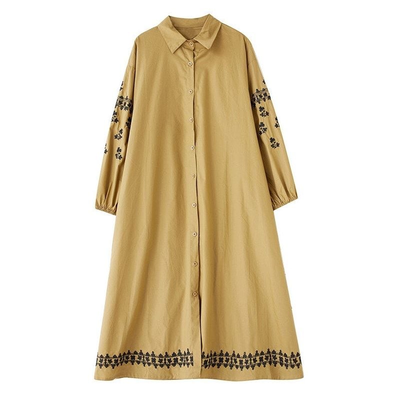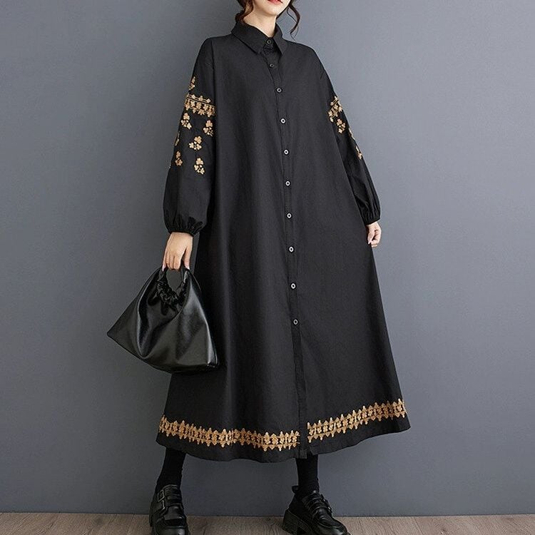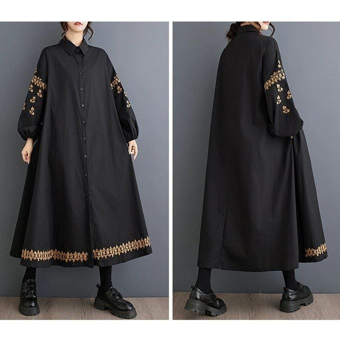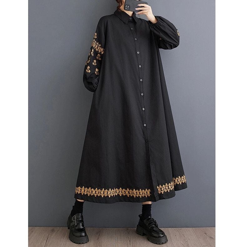 EMBROIDERED A-LINE LONG SHIRT DRESS 2colors M-15485