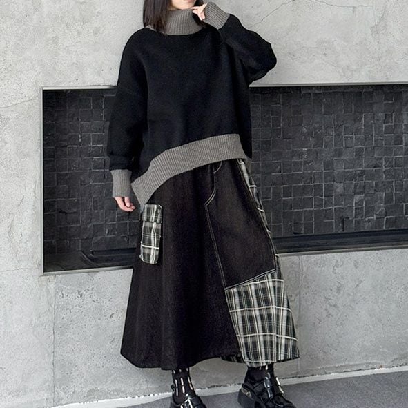 CONTRAST HIGH NECK PULLOVER KNIT 2colors M-15515