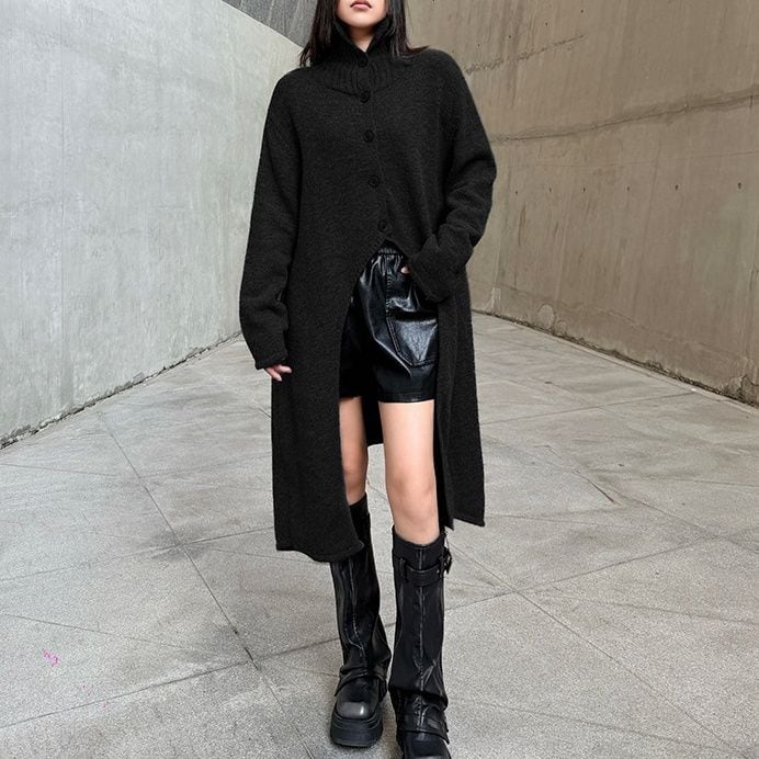 SOLID HIGH NECK HIGH-LOW HEM PULLOVER DESIGN KNIT 2colors M-15523