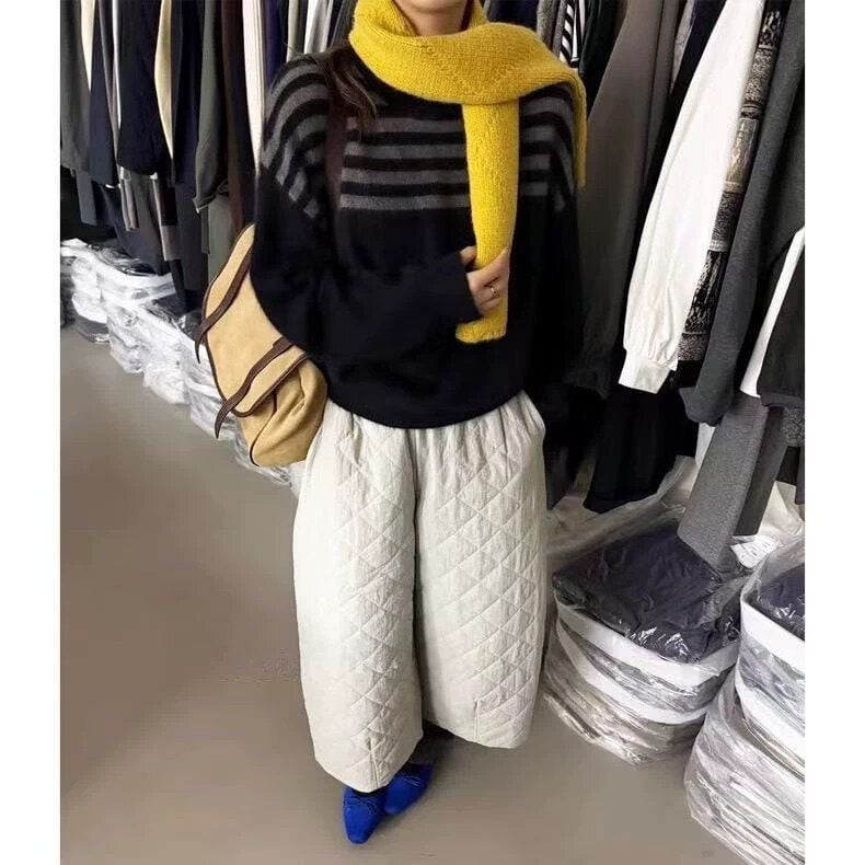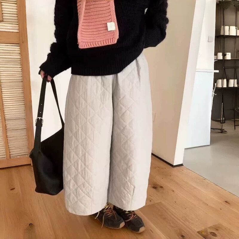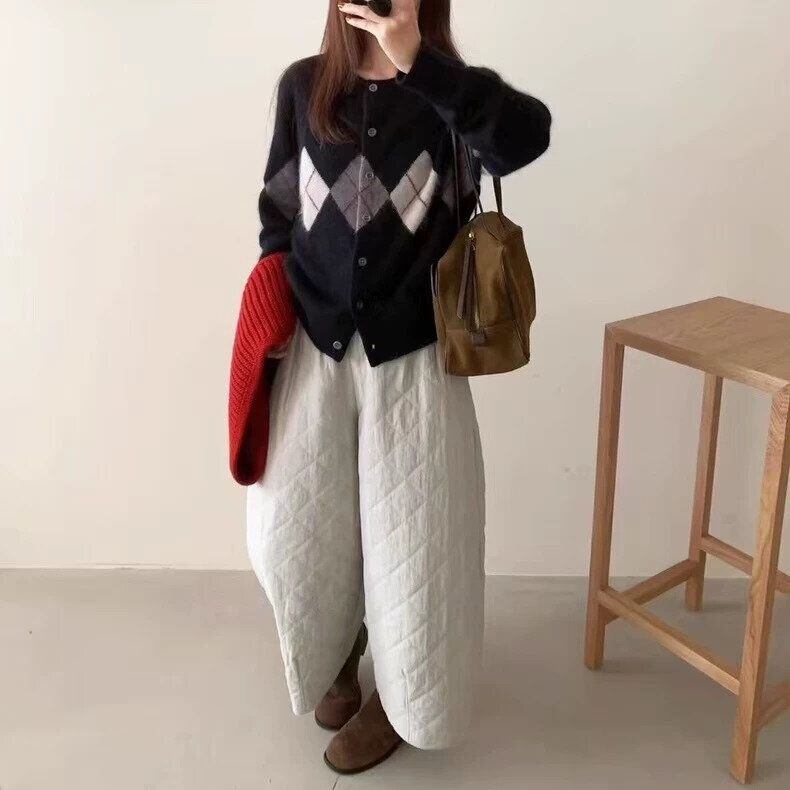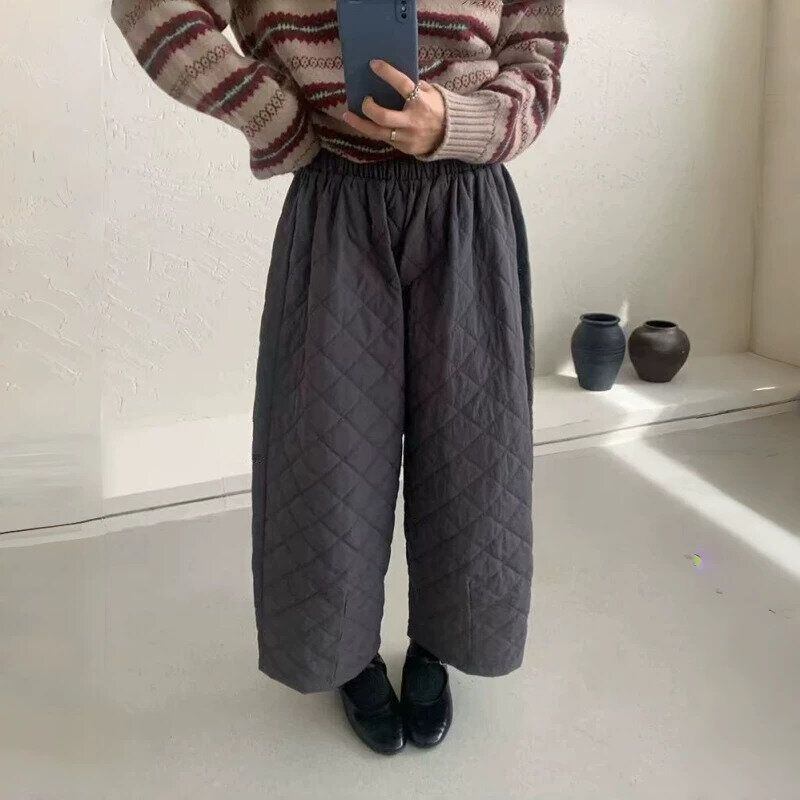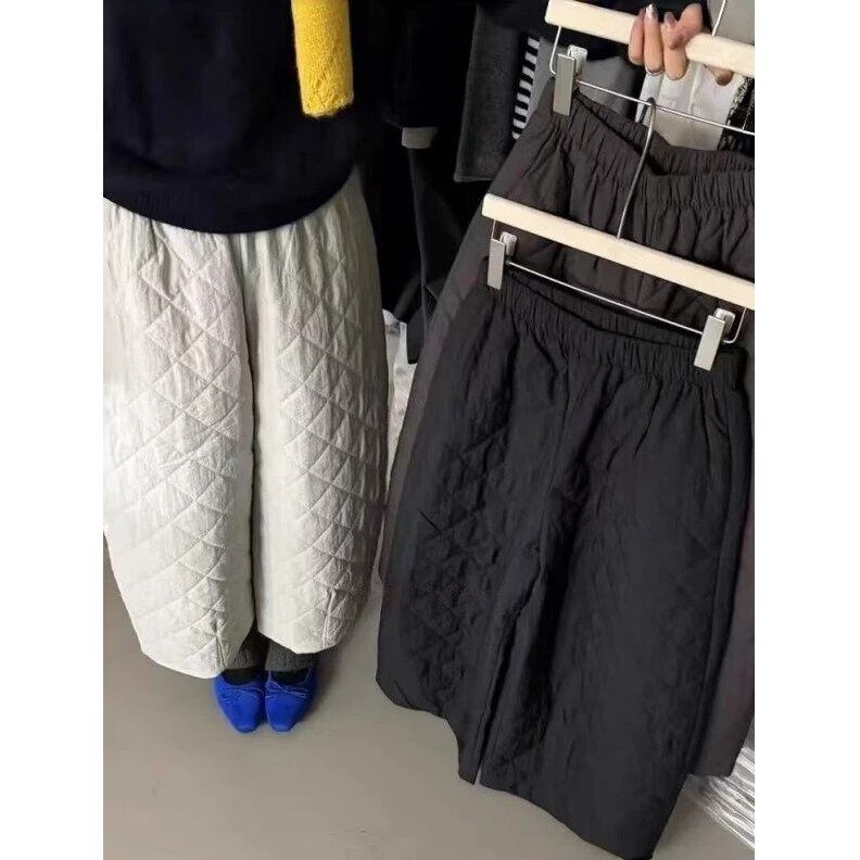 ダイヤモンド柄にスティッチされたキルティング素材でできた、ワイドレッグ・クロップドパンツです。ウエストはゴムなので、着脱が簡単で履き心地が良いです。単色でコーディネートしやすい、防寒アイテムです。ダークグレー・ブラック・アプリコットの3色から選べます。 SIZE:※測り方によって2-3cmの差が生じる場合がございます。 【M】ウエスト62-102cm 着丈86cm 【L】ウエスト64-106cm 着丈87cm 【XL】ウエスト66-106cm 着丈88cm ※ウエストはゴム仕様のため伸縮性がございます。 COLOR:Apricot、Black、DarkGray 素材:ポリエステル、その他 STYLE CALENDAR:春〇 夏△ 秋◎ 冬◎ お届けについて こちらの商品は海外店舗より直接発送となる為、 ご決済から到着までは、多くの場合【10日-2週間前後】でお届けしております。 ※在庫状況や輸送の混雑により、4週間前後かかる場合がございます。 注意事項 ・商品在庫切れにより注文キャンセルとさせていただく恐れもございますので、予めご了承くださいませ。 ・仕入れ工場を変えることがあるため、記載サイズと若干異なる場合がございます。 ・商品の色味は、お手持ちのスマートフォンの画面によって実物と若干異なる場合がございます。 ・イメージ違いやサイズ交換等、お客さまご都合による交換・返品はご遠慮ください。 送料について 全国一律580円。ただし10,000円以上のご注文で送料無料となります。 お支払い方法について ・クレジットカード決済(VISA/Mastercard/JCB/アメリカン・エクスプレス/ Diners Club) ・コンビニ決済/Pay-easy ※前払いのお支払い方法 ・Pay ID あと払い(コンビニ払い、口座振替) ※あと払いのお支払い方法 ・キャリア決済(d払い/au PAY(auかんたん決済)/ソフトバンク・ワイモバイルまとめて支払い) 管理番号:M-15543