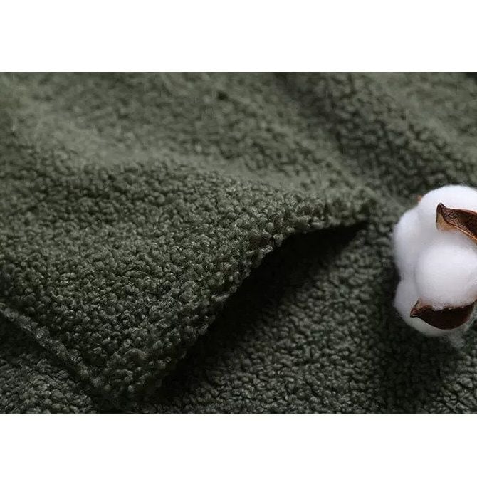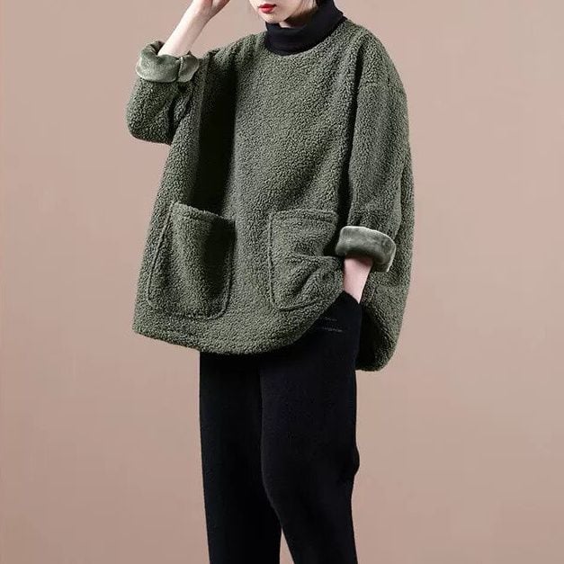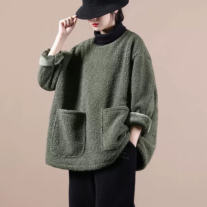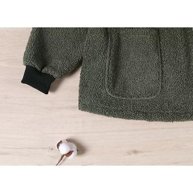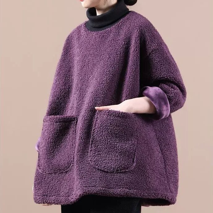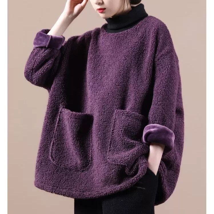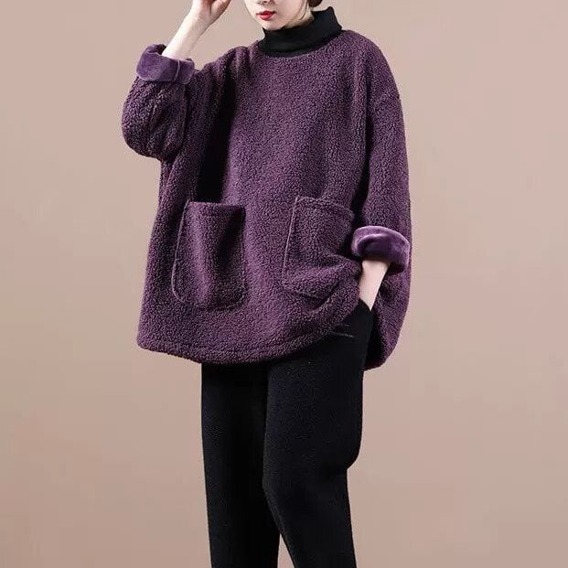 ブラックのハイネックがアクセントになった、フェイクツーピースデザインのプルオーバートップです。ボアフリースに滑らかな起毛のライニングで温かい、ゆったりとしたシルエットと大きなポケットがキュートなカジュアルアイテムです。色はグリーンとパープルの2色から選べます。