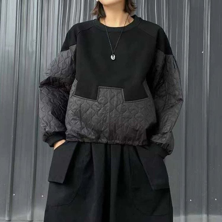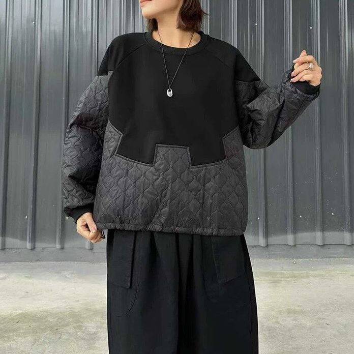 スウェット素材とキルティングのスティッチデザインが特徴的な、ラウンドネック・長袖・プルオーバートップです。裾にはドローコードが付いて、シルエットを調節できます。どんなボトムスにも合わせやすい、温かいカジュアルアイテムです。色は2色から選べます。