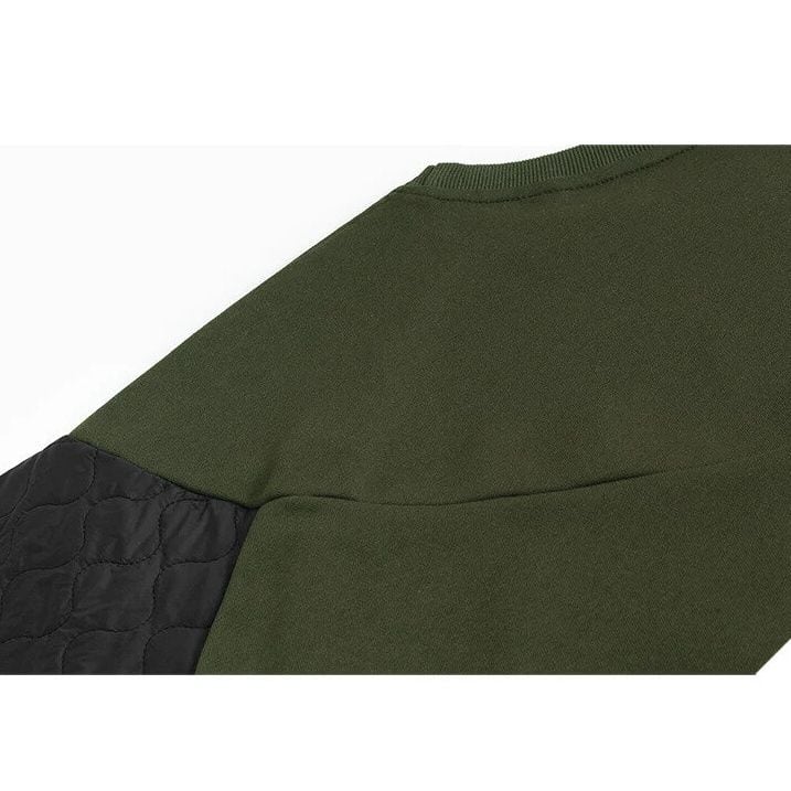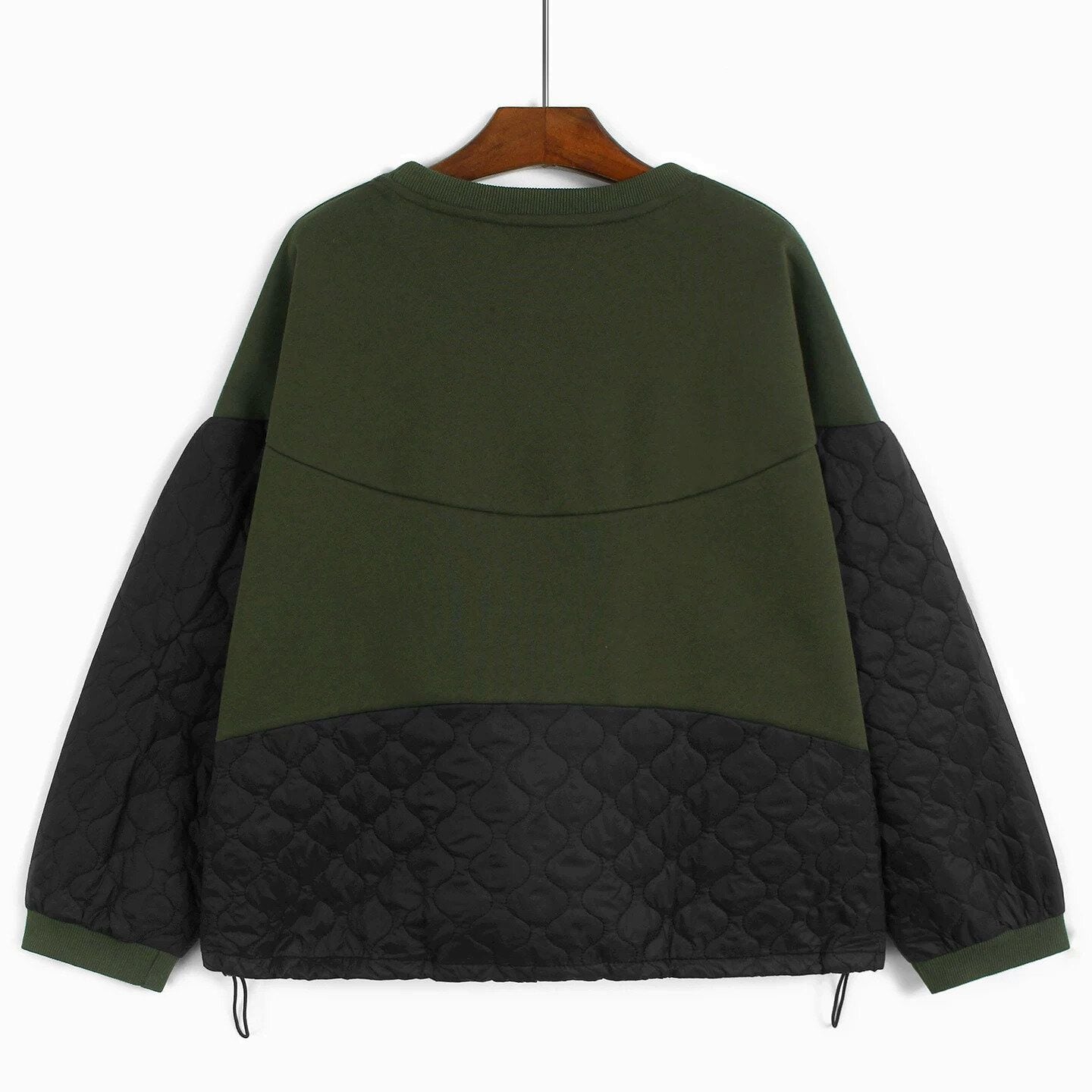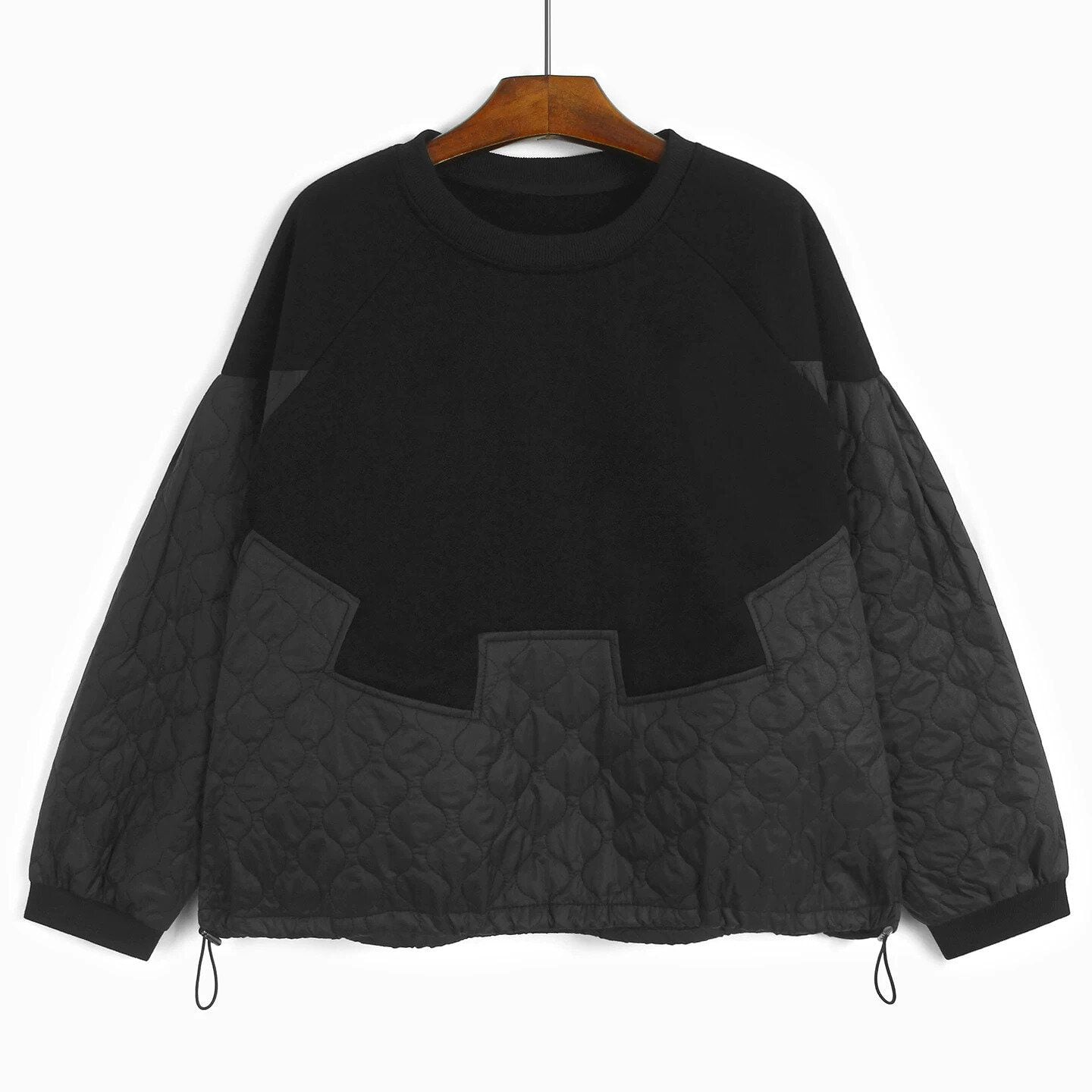 QUILTING STITCH DRAW CORD HEM ROUND NECK SWEAT SHIRT 2colors M-15644