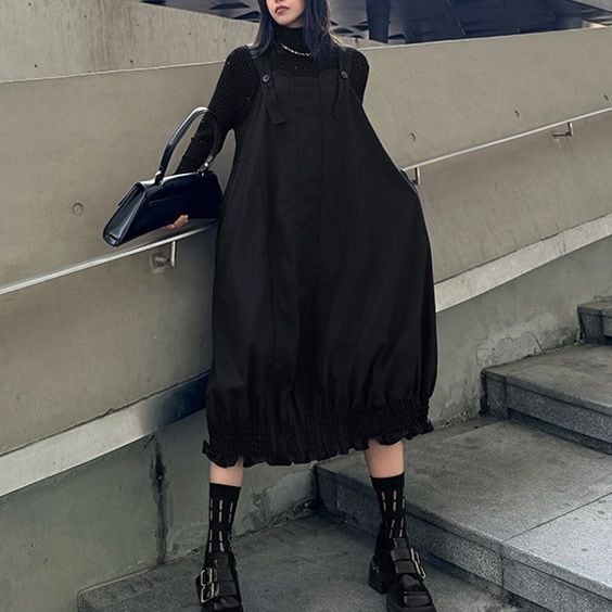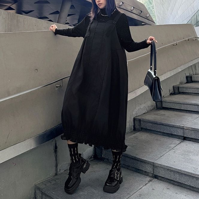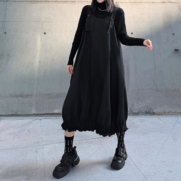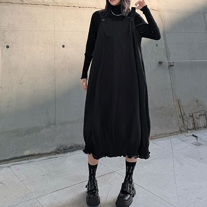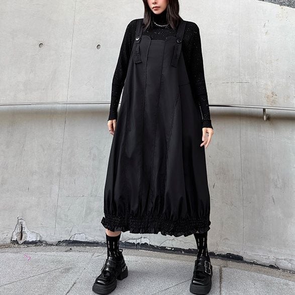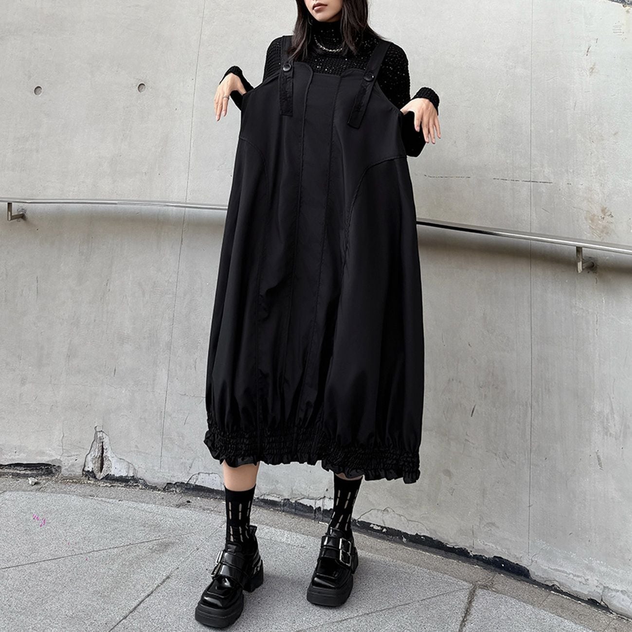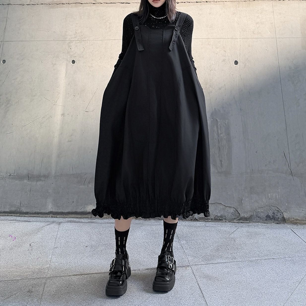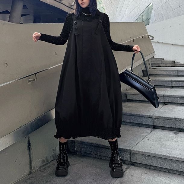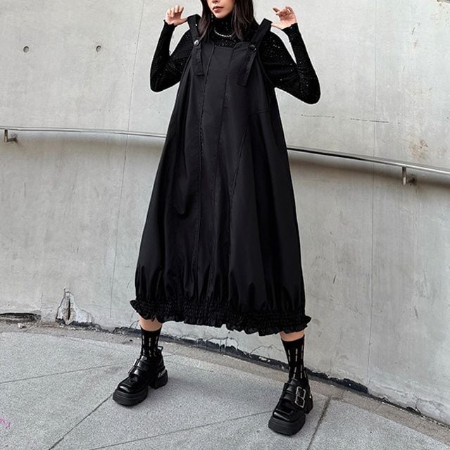 BLACK A-LINE MIDI STRAP DESIGN JUMPER DRESS 1color M-15649