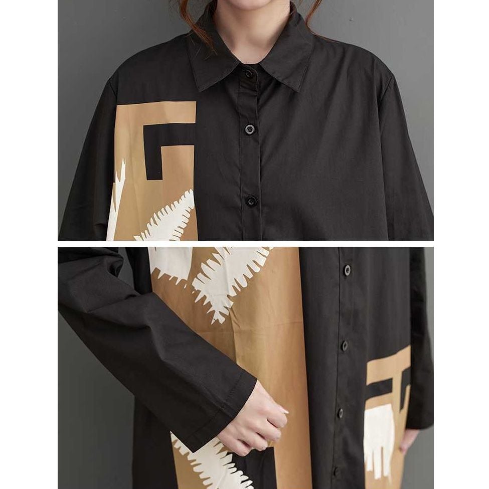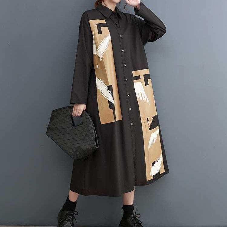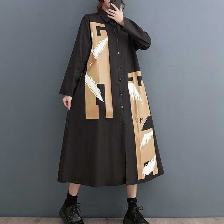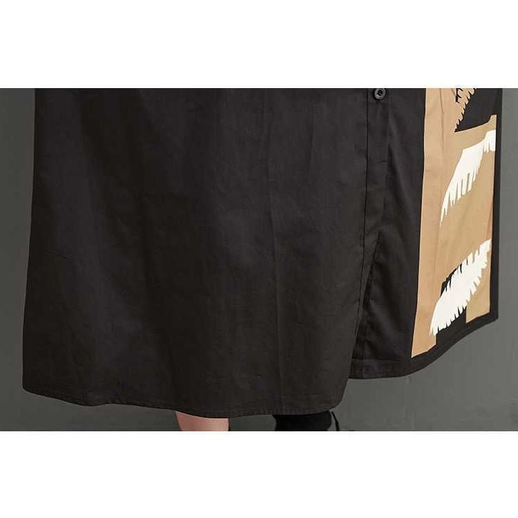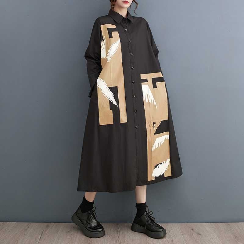 ASYMMETRIC PATCHED A-LINE MIDI SHIRT DRESS 1color M-15698