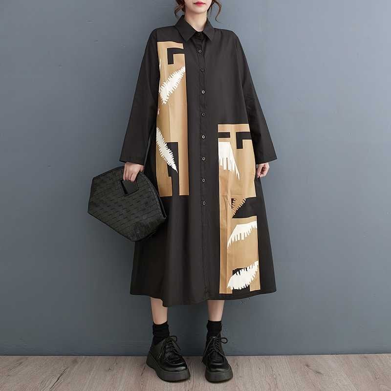 アシンメトリックにあしらわれた柄生地のパッチがお洒落な、ポロ襟・長袖・ミドル丈のシャツワンピースです。広がり過ぎない控えめなAラインのシルエットが上品な、モードな印象のカジュアルアイテムです。