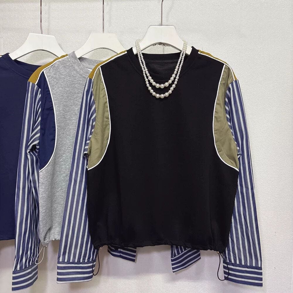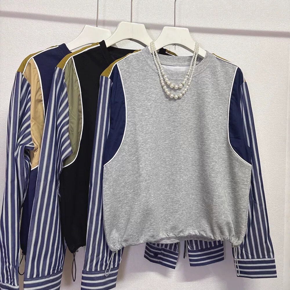 レースのスティッチやストライプのシャツ袖をスティッチしたデザインが特徴的な、ラウンドネックのスウェットシャツです。裾にはドローコードが付いて、シルエットを調節できます。色やデザインなど、全6種類から選べます。 SIZE:※測り方によって2-3cmの差が生じる場合がございます。 【FREE SIZE】バスト100-106cm 着丈60cm COLOR:Gray(袖ストライプ)、Blue(袖ストライプ)、Black(袖ストライプ)、Gray(レース)、Blue(レース)、Black(レース) 素材: STYLE CALENDAR:春〇 夏△ 秋◎ 冬◎ お届けについて こちらの商品は海外店舗より直接発送となる為、 ご決済から到着までは、多くの場合【10日-2週間前後】でお届けしております。 ※在庫状況や輸送の混雑により、4週間前後かかる場合がございます。 注意事項 ・商品在庫切れにより注文キャンセルとさせていただく恐れもございますので、予めご了承くださいませ。 ・仕入れ工場を変えることがあるため、記載サイズと若干異なる場合がございます。 ・商品の色味は、お手持ちのスマートフォンの画面によって実物と若干異なる場合がございます。 ・イメージ違いやサイズ交換等、お客さまご都合による交換・返品はご遠慮ください。 送料について 全国一律580円(沖縄県は1,500円) ※10,000円以上のご注文で沖縄県を含む全国送料無料。 お支払い方法について ・クレジットカード決済(VISA/Mastercard/JCB/アメリカン・エクスプレス/ Diners Club) ・コンビニ決済/Pay-easy ※前払いのお支払い方法 ・Pay ID あと払い(コンビニ払い、口座振替) ※あと払いのお支払い方法 ・キャリア決済(d払い/au PAY(auかんたん決済)/ソフトバンク・ワイモバイルまとめて支払い) 管理番号:M-15778