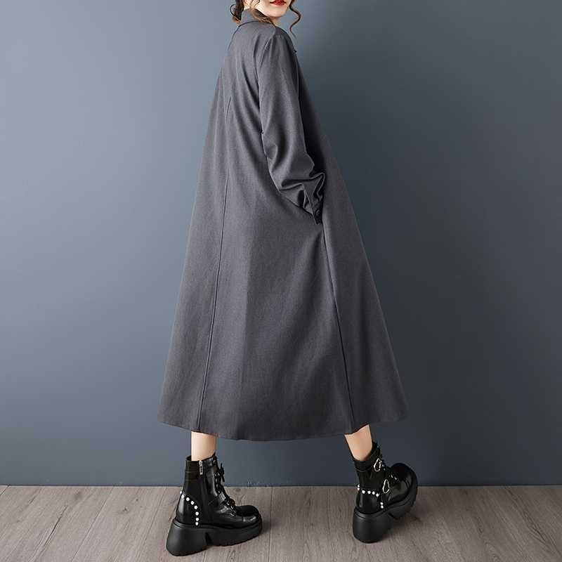 SOLID A-LINE MIDI DESIGN SHIRT DRESS 2colors M-15784