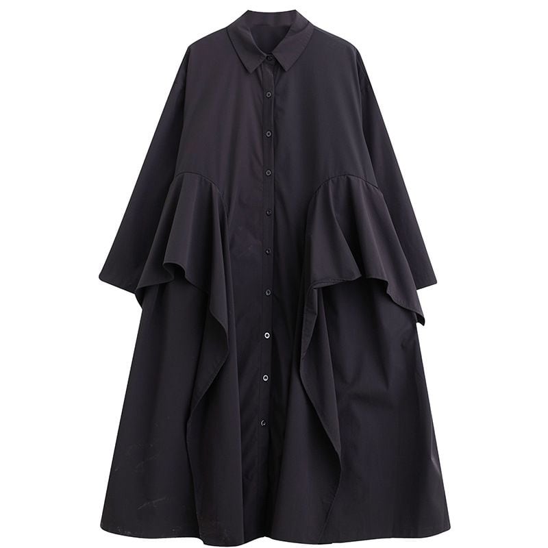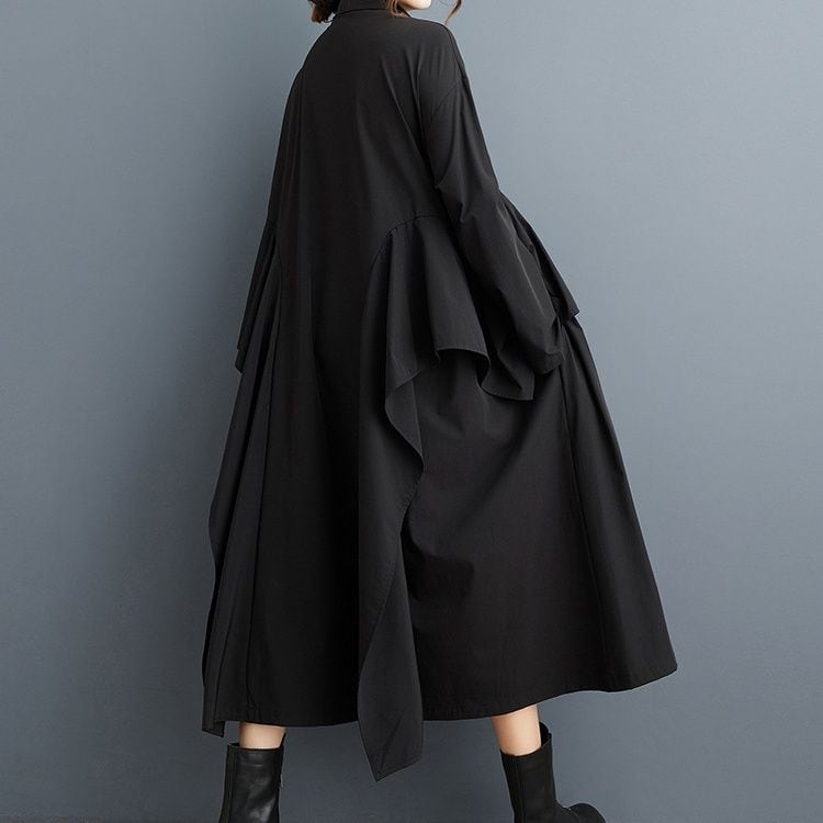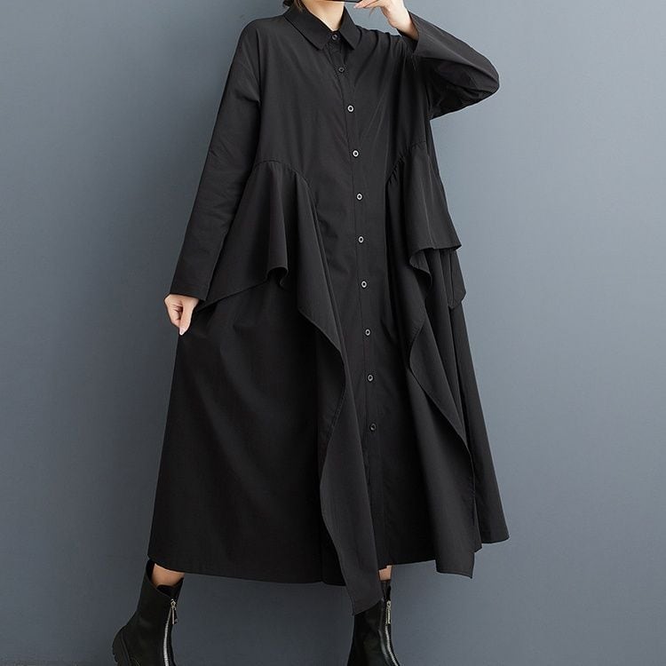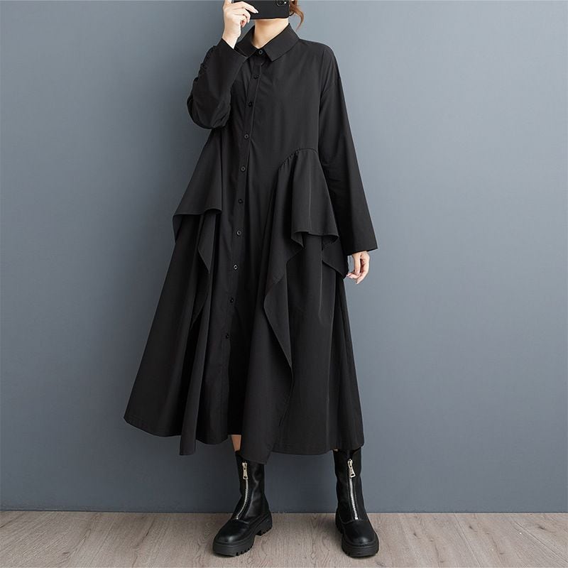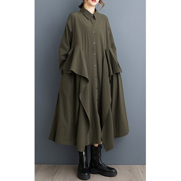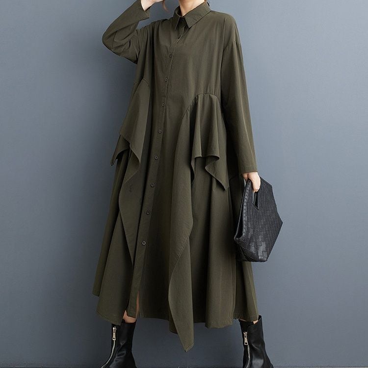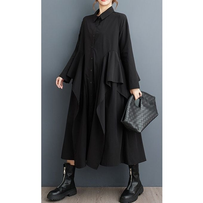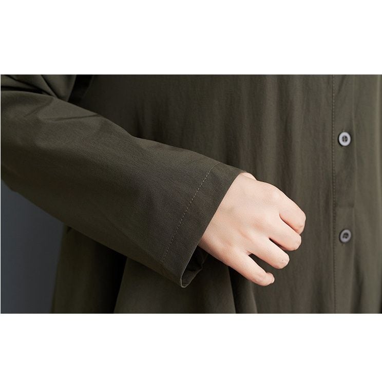 SOLID A-LINE MIDI DESIGN SHIRT DRESS 2colors M-15789