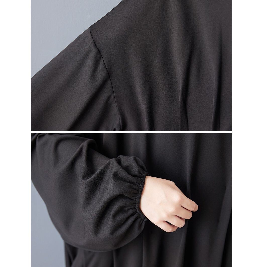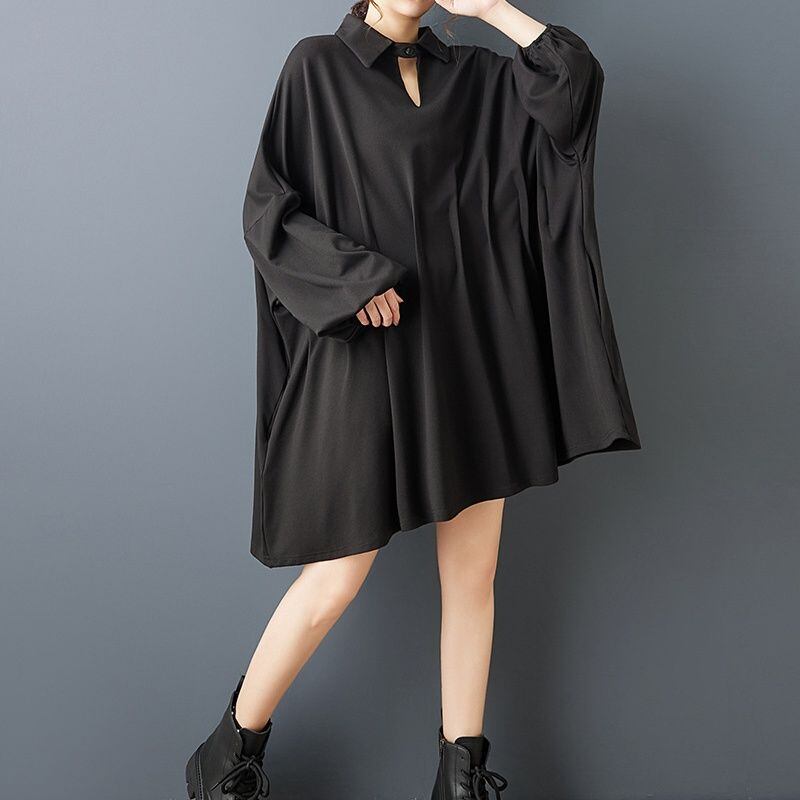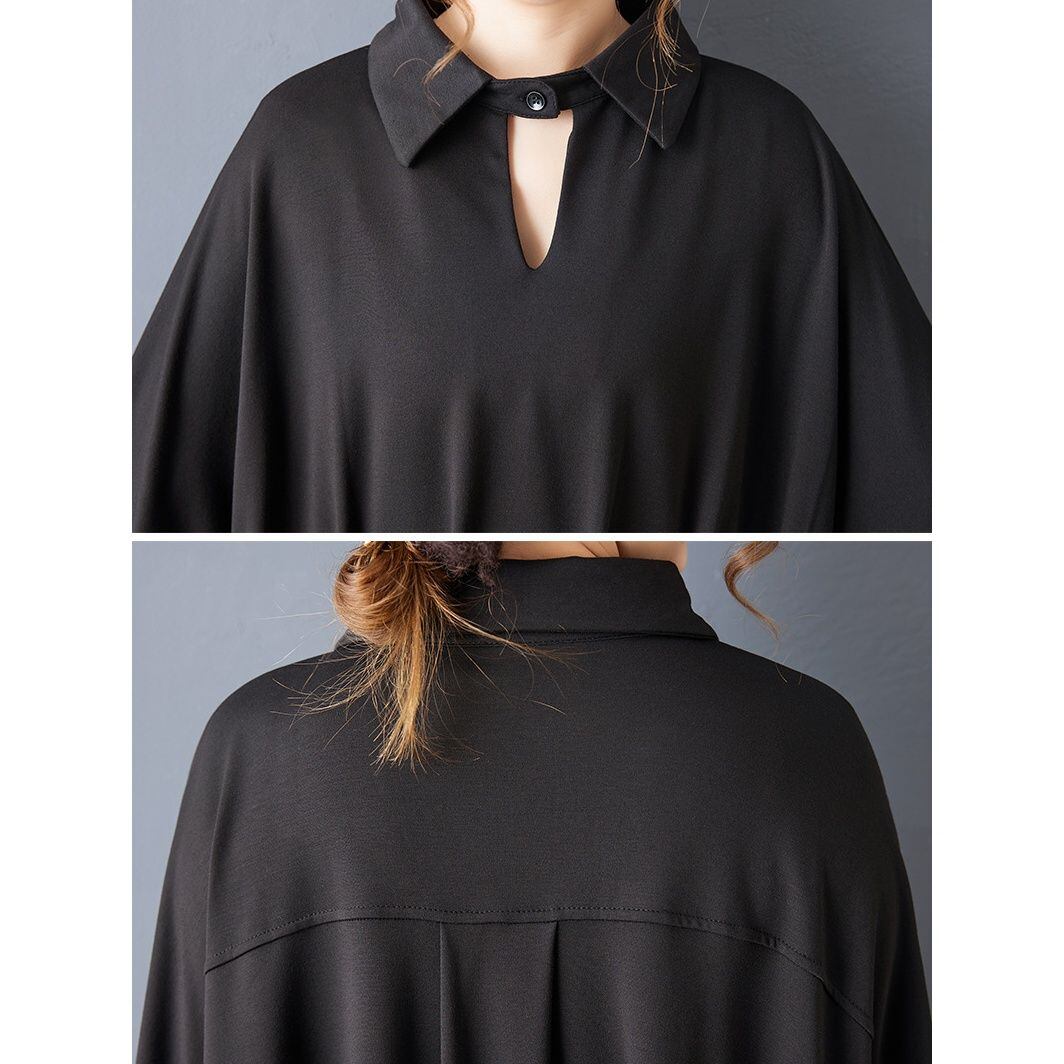 BLACK BAT SLEEVES WIDE MINI DESIGN SHIRT DRESS 1color M-15791