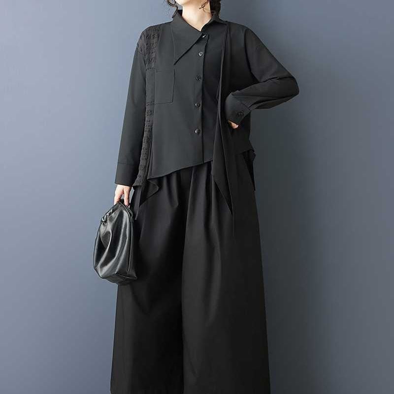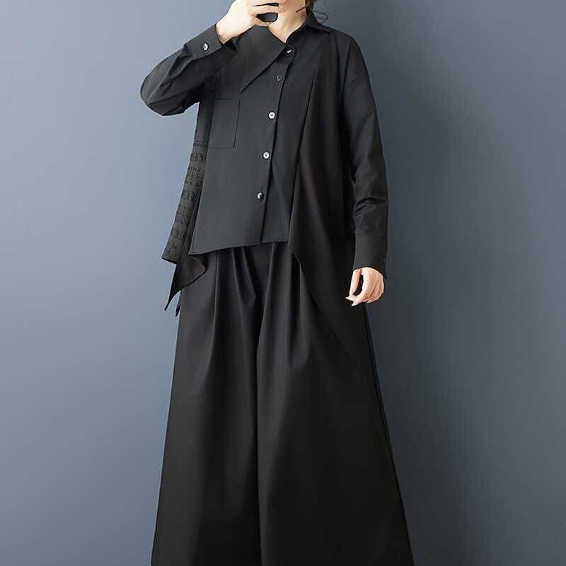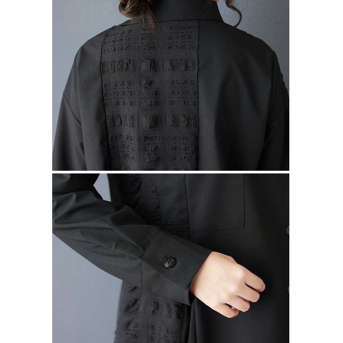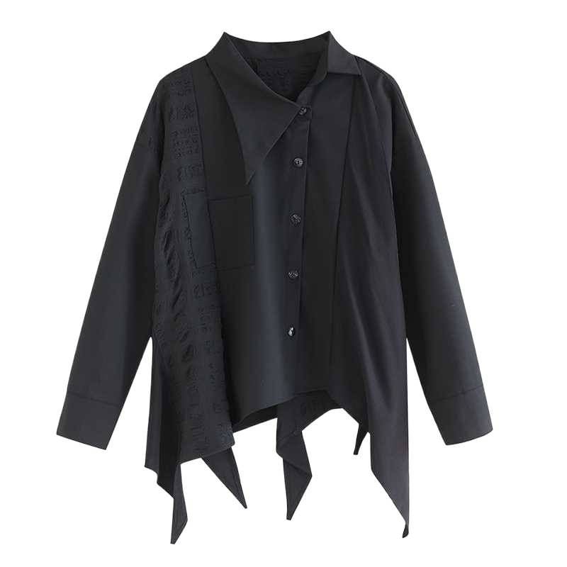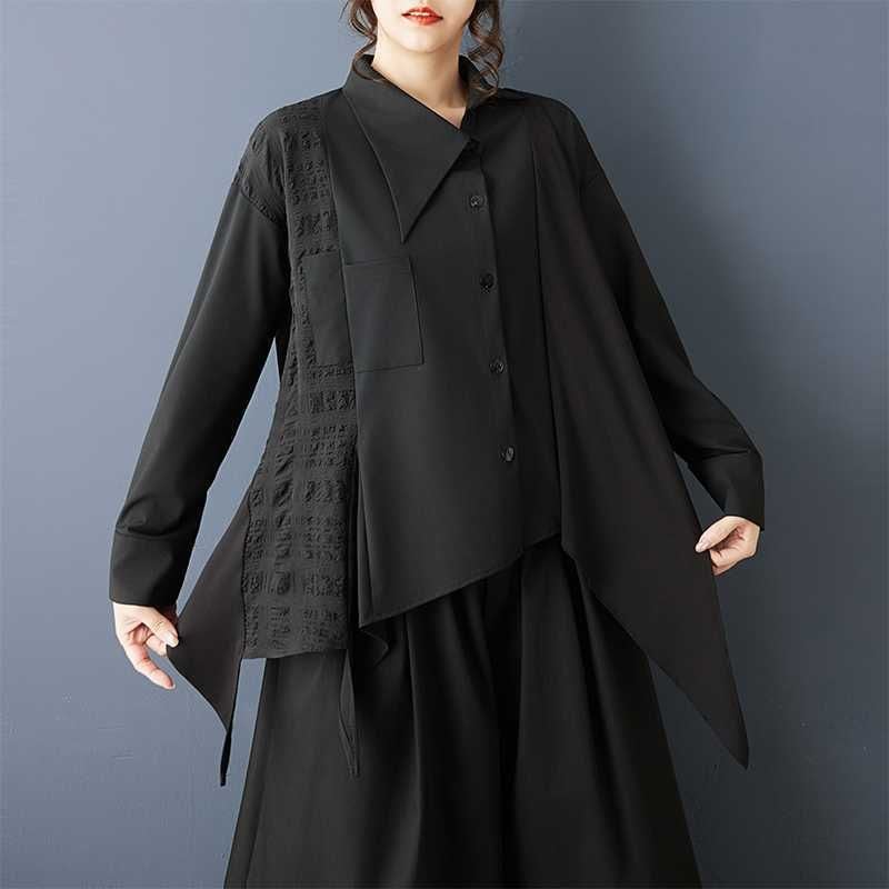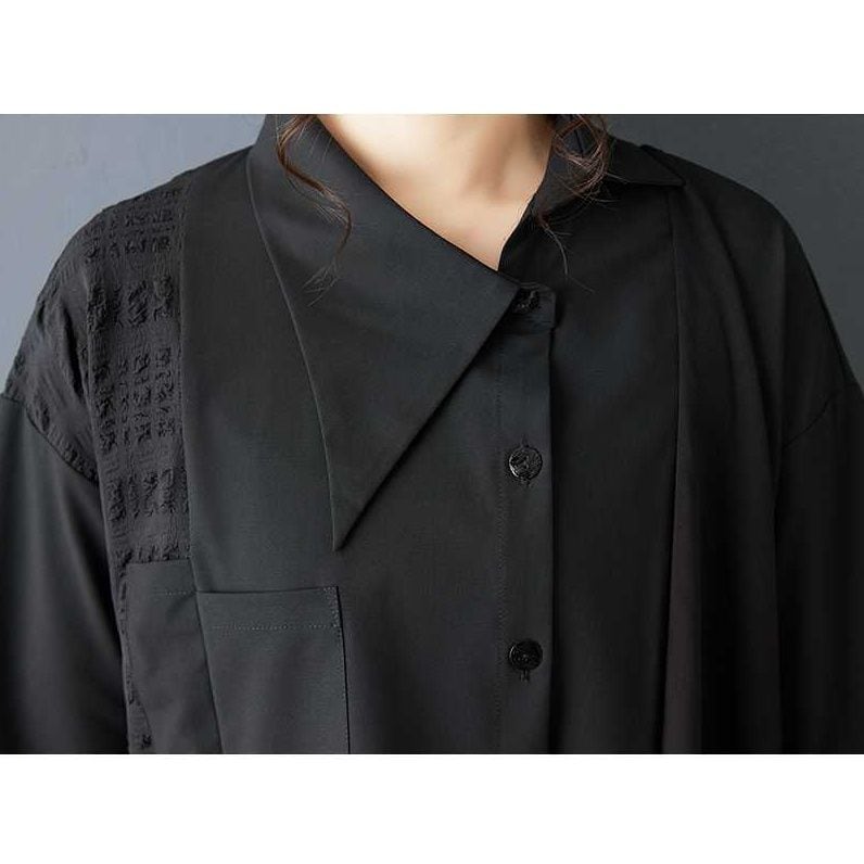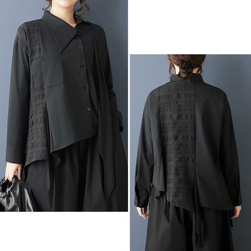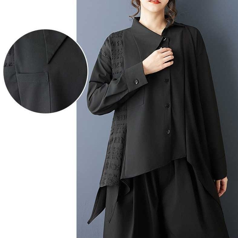 BLACK IRREGULAR HEM ASYMMETRIC DESIGN SHIRT 1color M-15808
