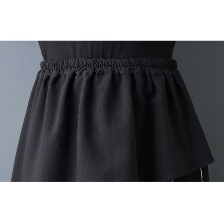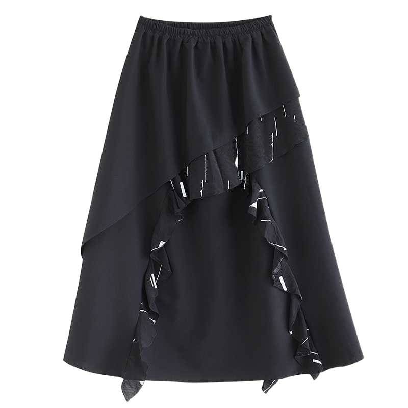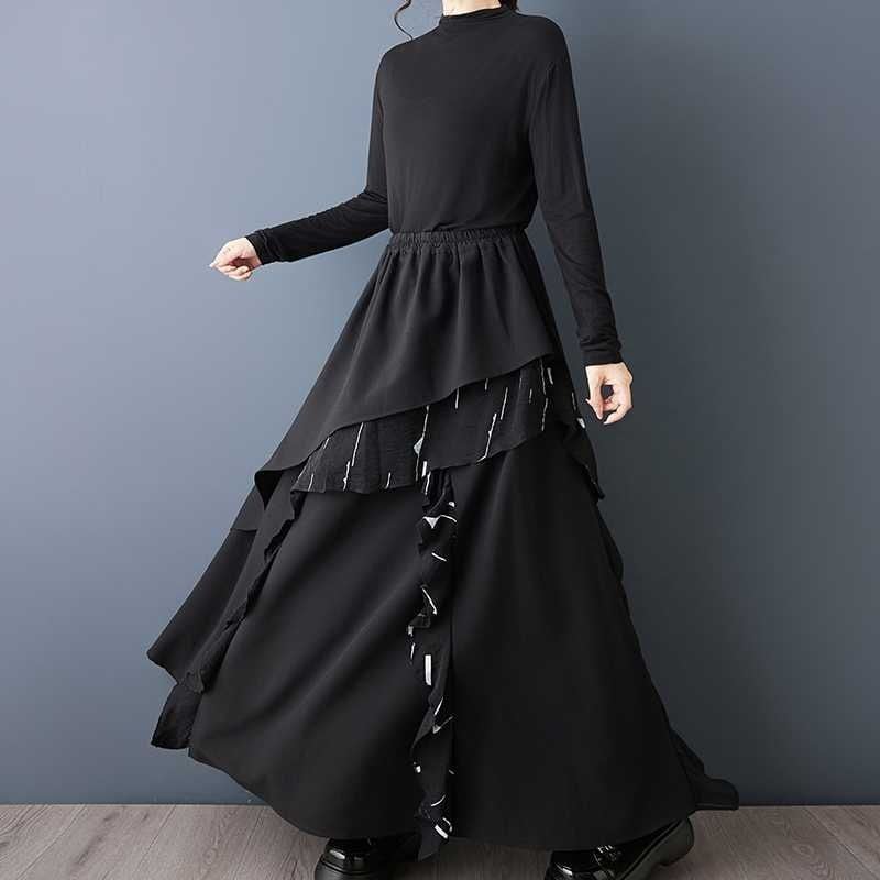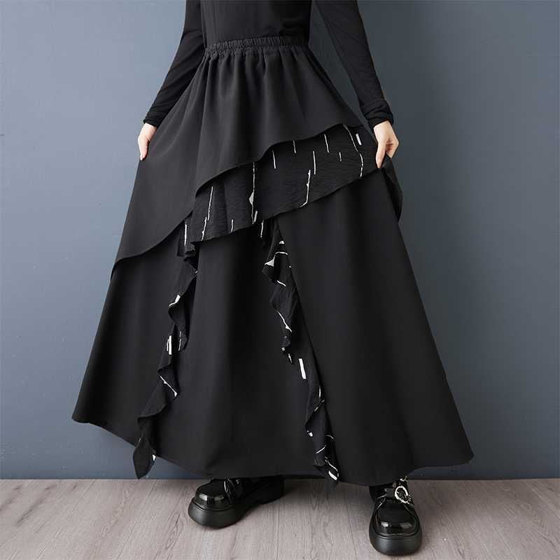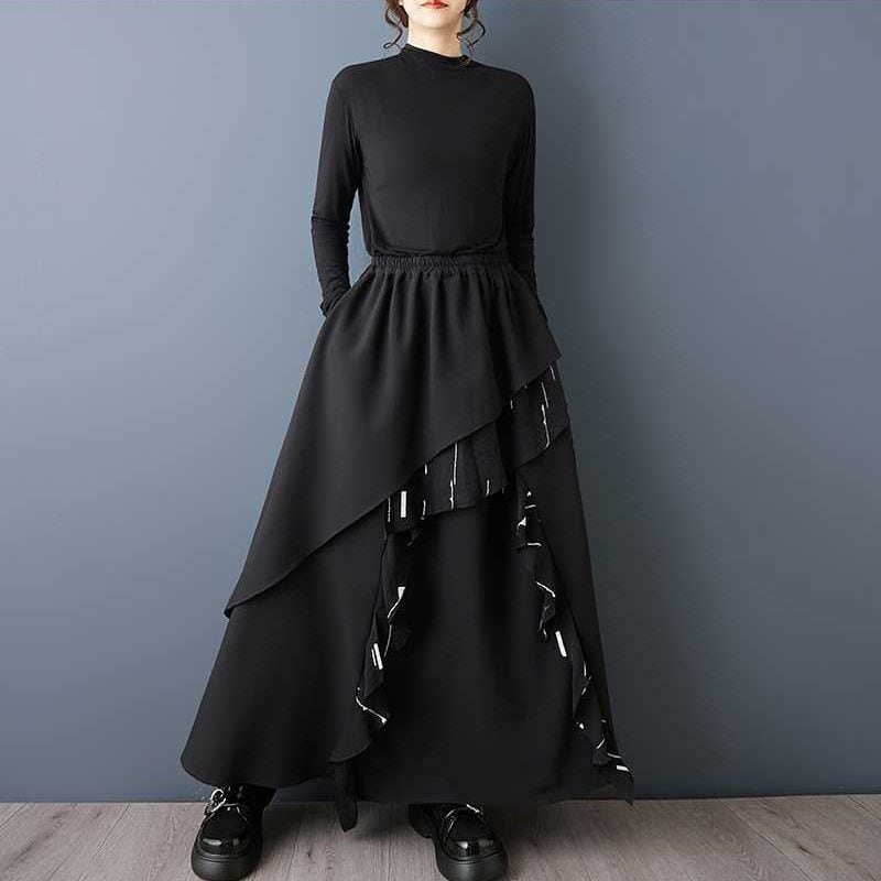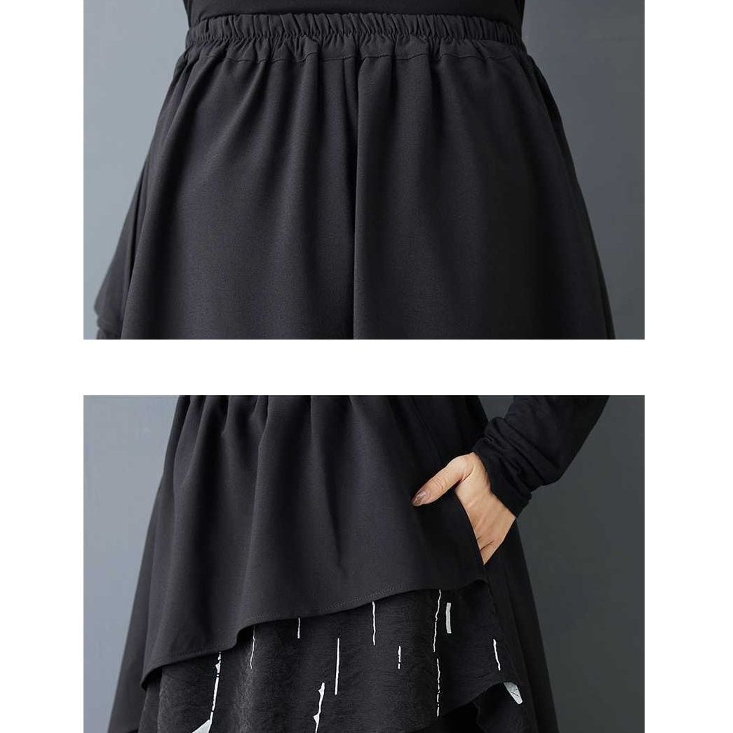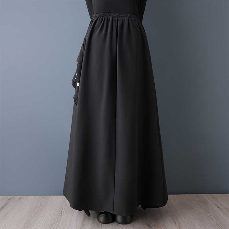BLACK ELASTIC WAIST A-LINE LONG DESIGN SKIRT 1color M-15809