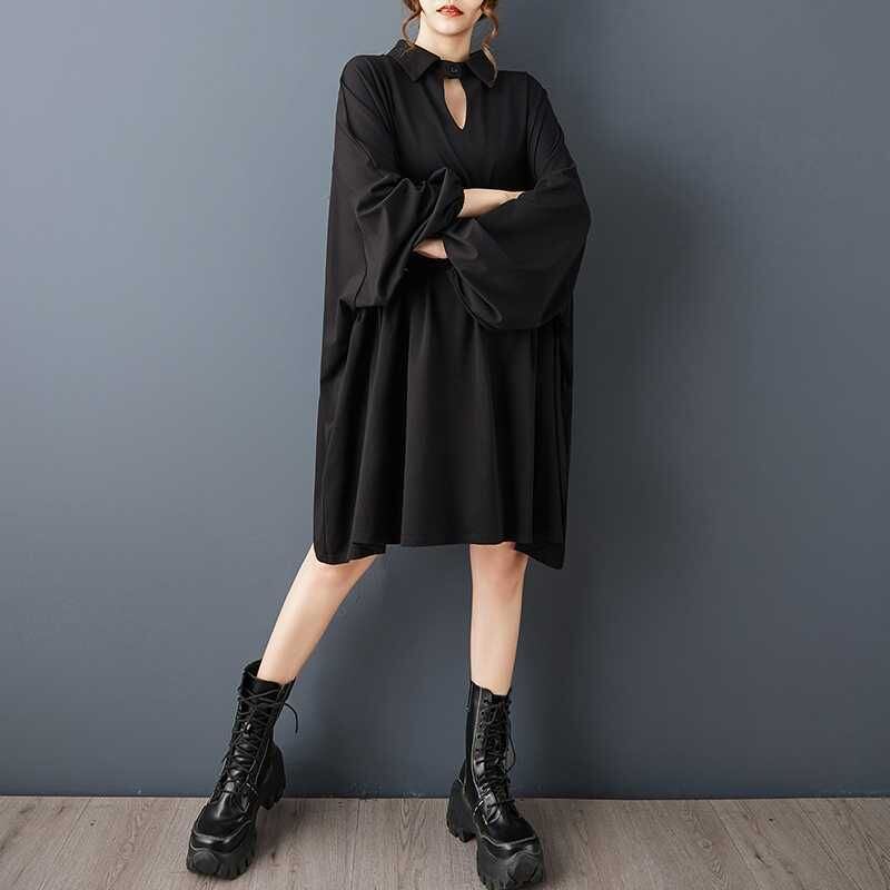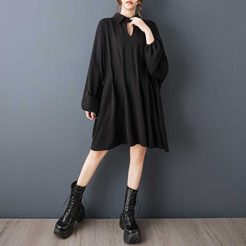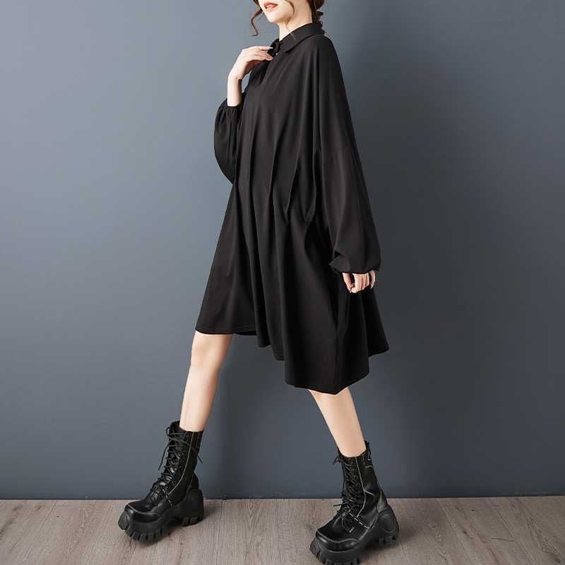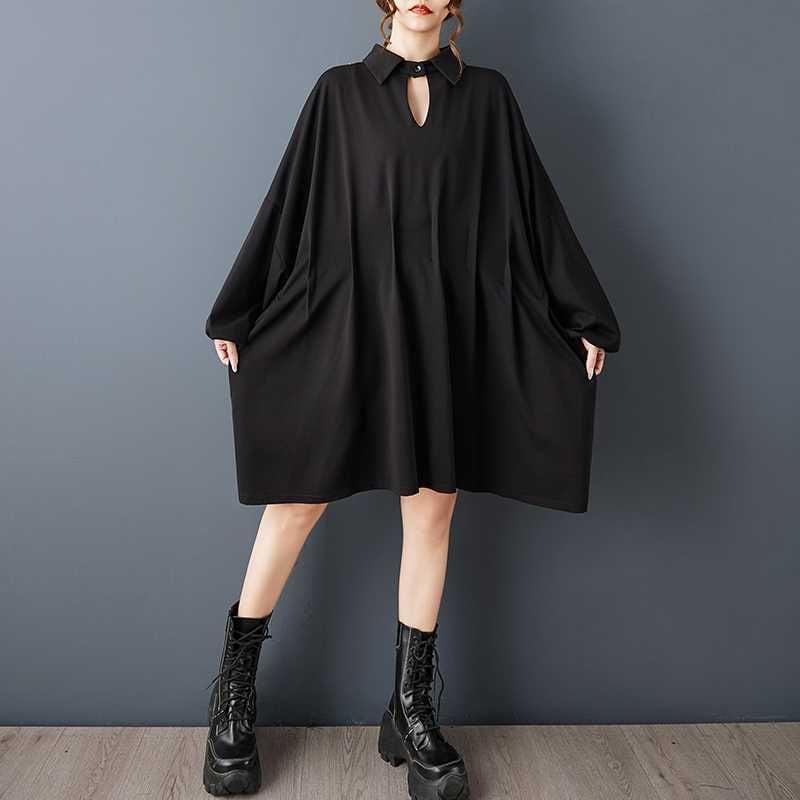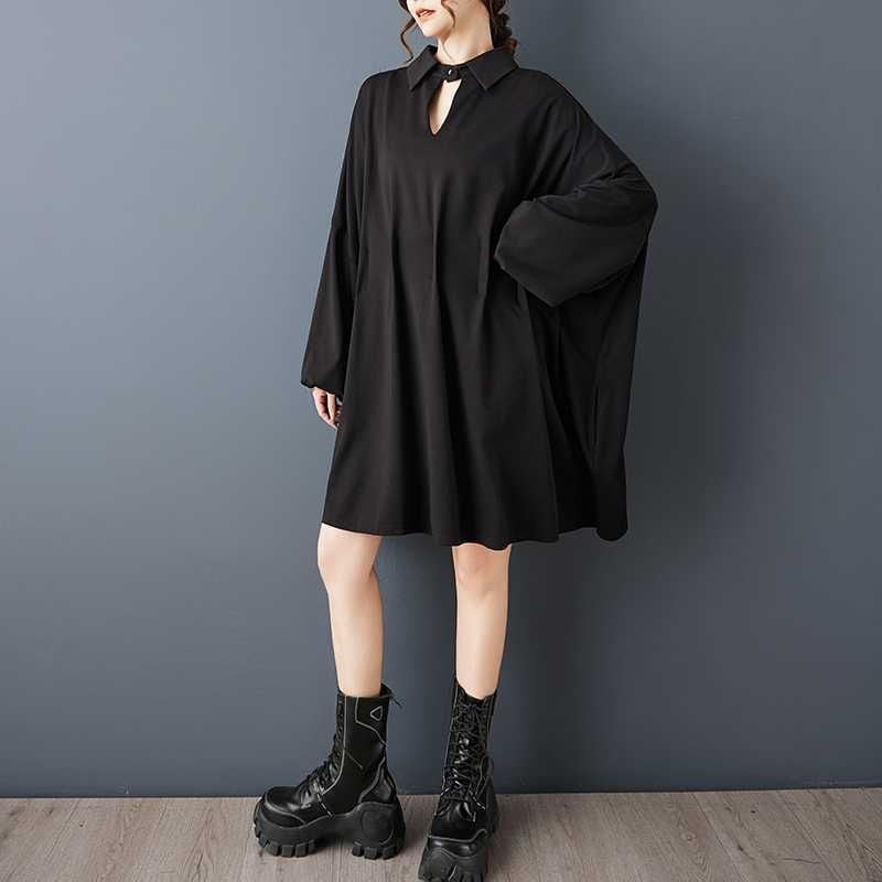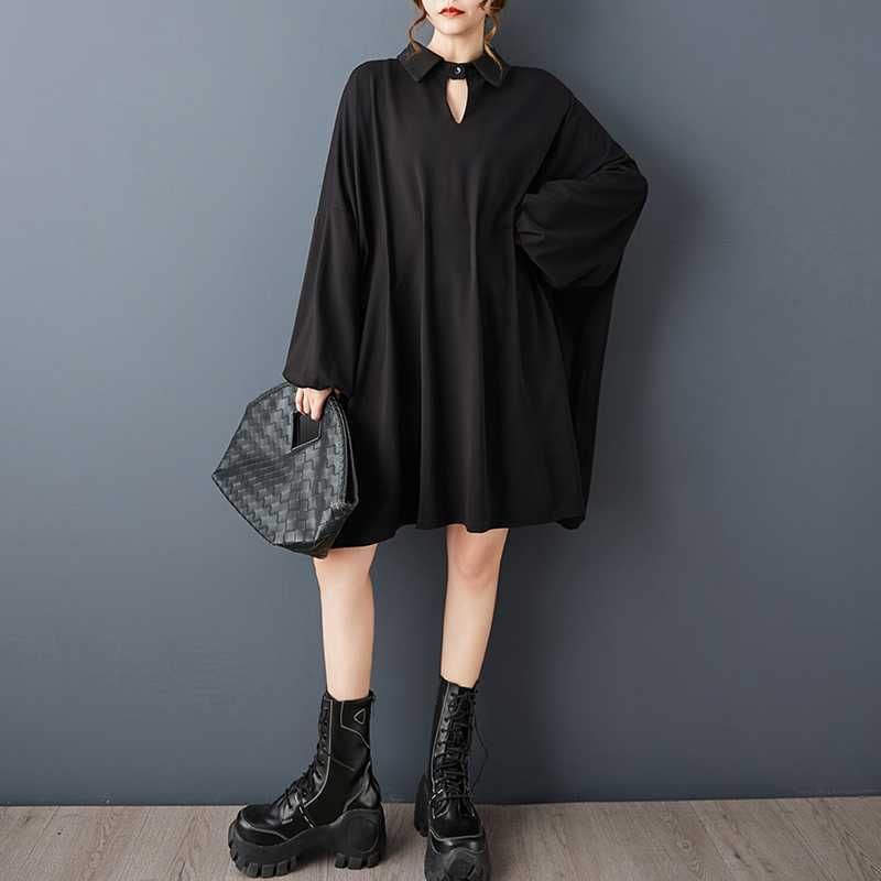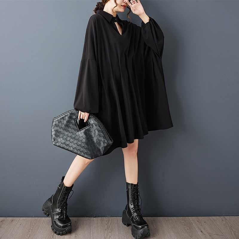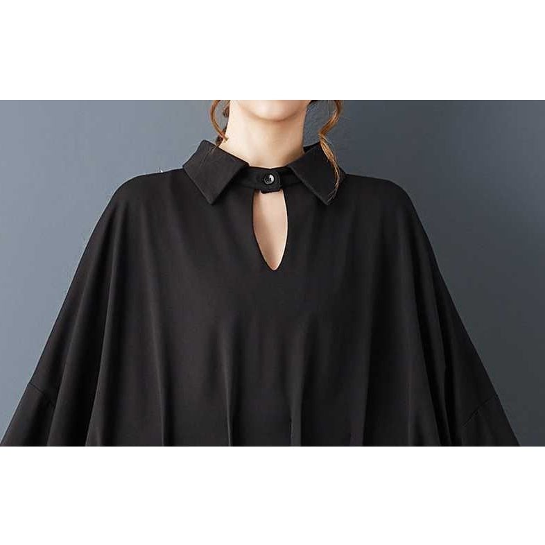 BLACK BAT SLEEVES WIDE MINI DESIGN SHIRT DRESS 1color M-15812