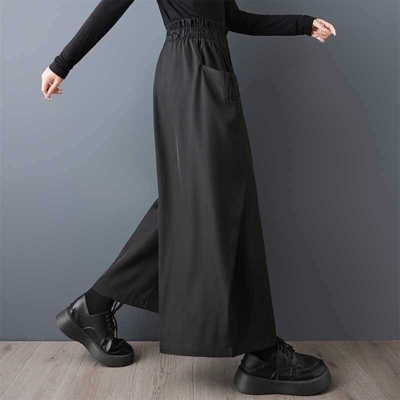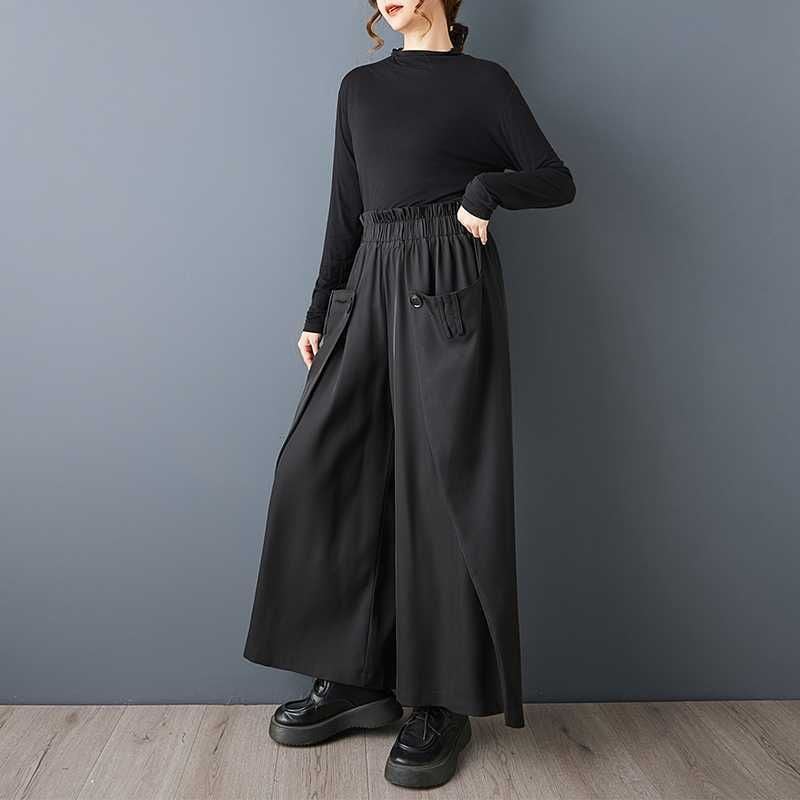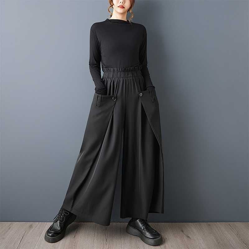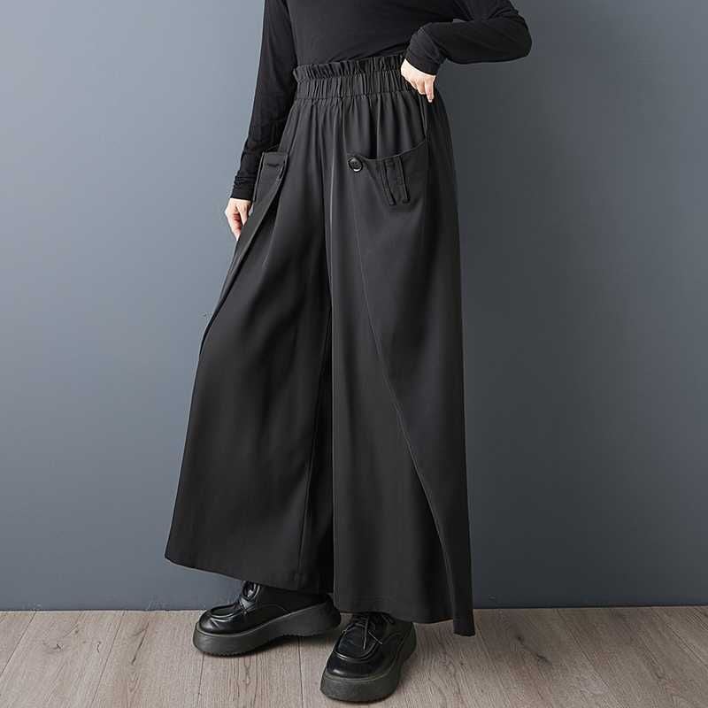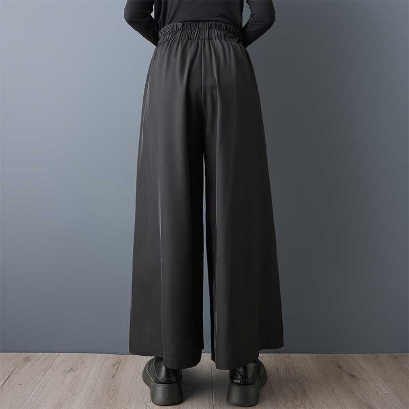BLACK ELASTIC WAIST WIDE LEG DESIGN PANTS 1color M-15813