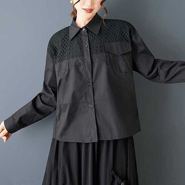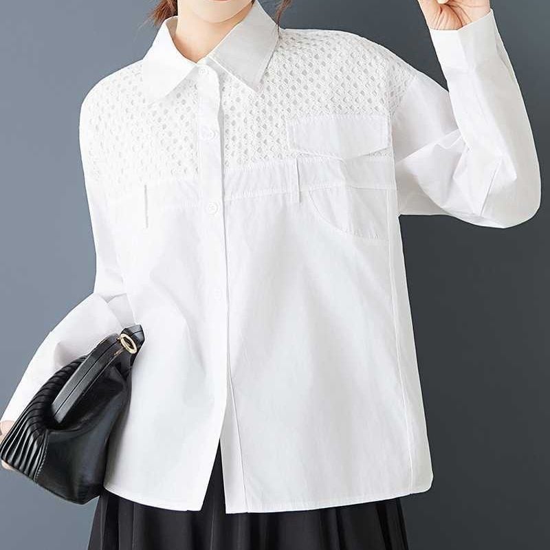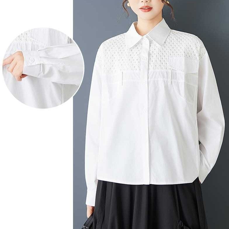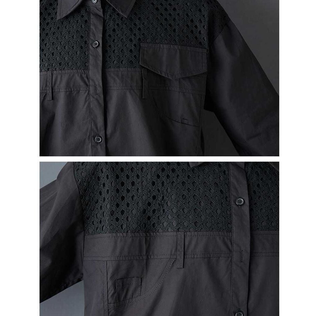 SOLID MESH STITCHED LONG SLEEVES SHIRT 2colors M-15817